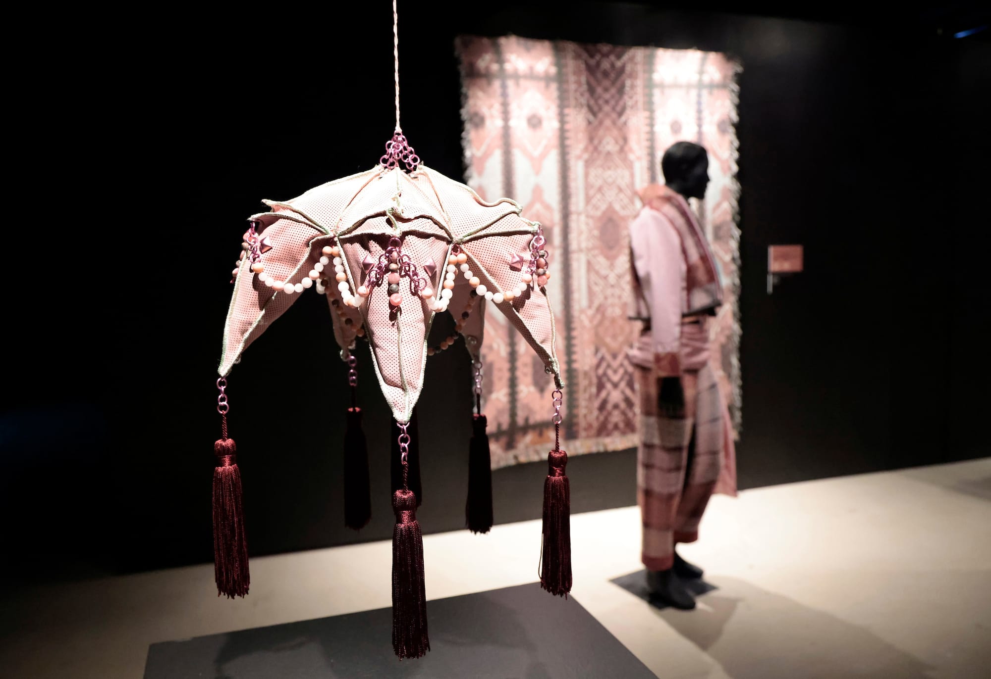 In the interview below, the artist expresses their desire for a "queer Armenian future," acknowledging the staunch colonialist and imperialist binary that enforces traditional gender roles. Kafafian's current exhibition at the Stamps Gallery on the University of Michigan's Ann Arbor campus consists of elegantly constructed garments and accessories, powerful amulets, and physical renditions of the in-between portal that connects the artist to this futuristic scape derived from the past. "Cloth is vers," Kafafian says. "Cloth communicates. Weaving uses a binary system to produce non-binary objects that are greater than the sum of their parts."