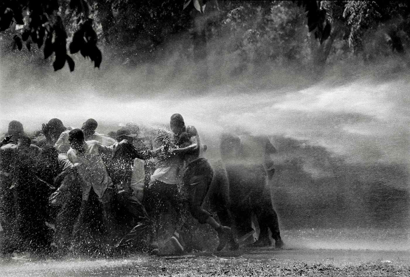 The hoses were so powerful that people were knocked down and propelled 15 or 20ft. But instead of running away, some began to hold on to each other and stand up. I was hiding behind a tree — to protect my person and keep my camera dry. I managed to shoot several rolls with a Nikon F and a telephoto lens, even though I was appalled, frightened and very upset. I tried to find that moment when the water and the people were both readable and formed some sort of a pattern.
