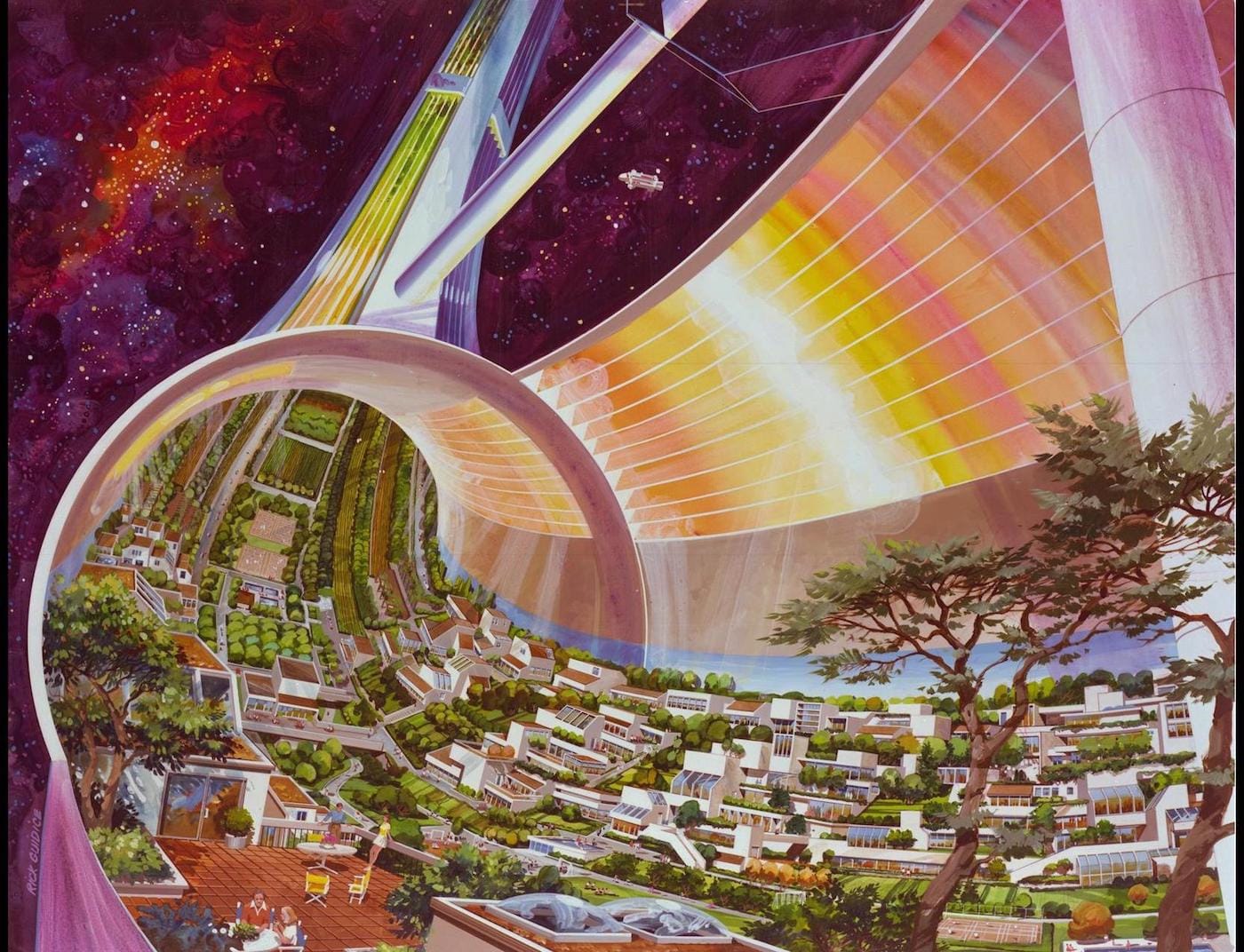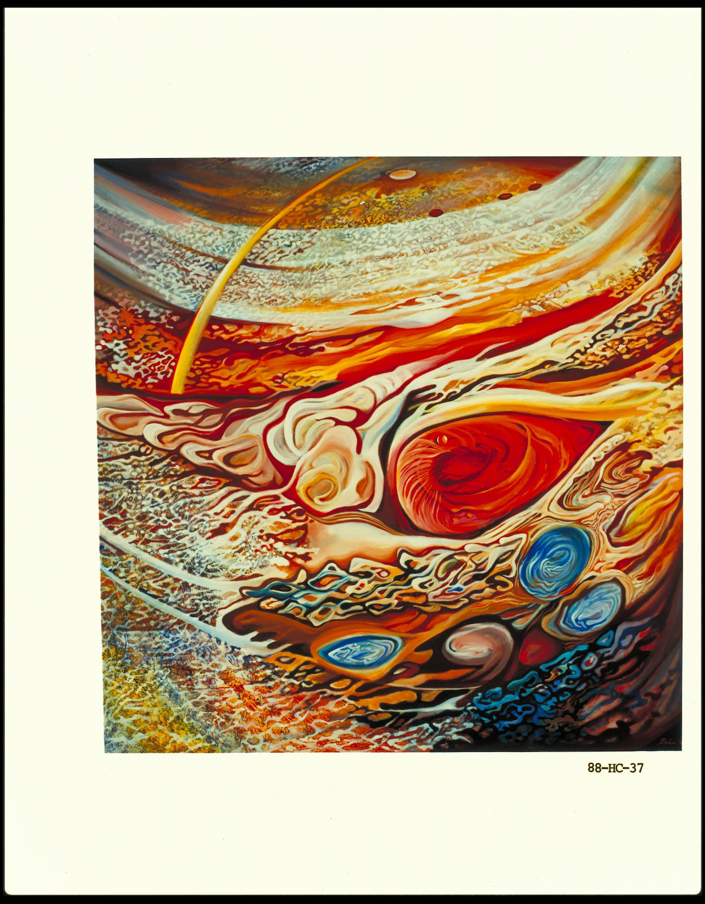 There’s enough beauty here to make you cry, from images of gleaming auroras to crisp captures of planets. Not all them are celestial, with plenty of behind-the-scenes glimpses of laboratory work and test runs back here on our blue planet. You’ll even find some space-related art, including concept renderings, retrofuturistic visions, and contemporary works such as Paul Henry Ramirez’s “Stardust” (2007) — an homage to its eponymous mission, made of cometary material — and EV Day’s “Wheel of Optimism” (2006) — which imagines a Martian world with organic plant life.