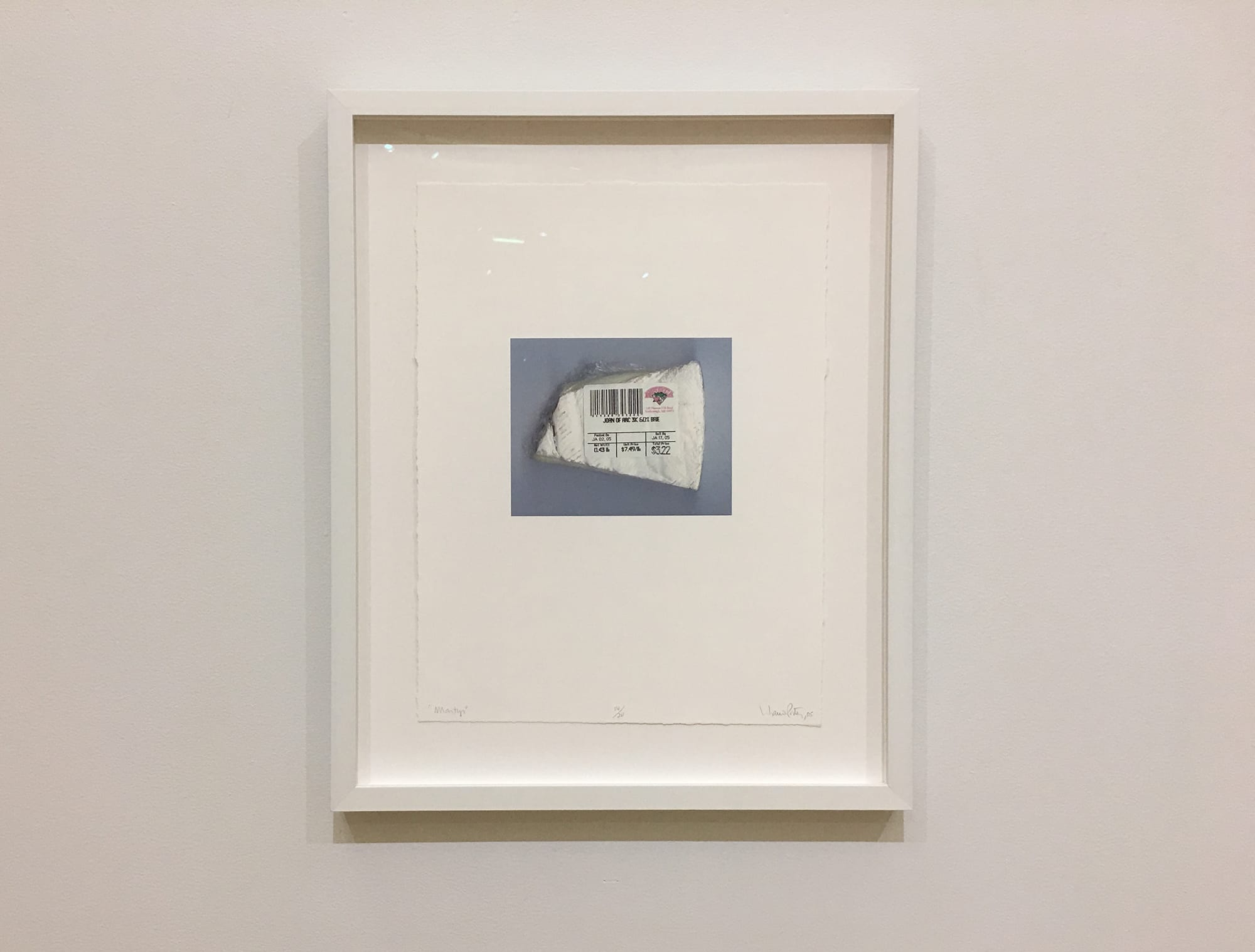 In a bustling grocery store, stacked high with wares, packed with customers, and filled with the white noise of commerce, you might otherwise never notice a diminutive slice of soft cheese named after a nineteen year old woman who was burned at the stake. Plucked by the ever-vigilant Porter and placed on an open plain in a photograph, one is forced to confront the object on its own terms. What is the flavor of martyrdom? Of betrayal? Of a woman being burned at the stake? Does it pair best with a dark cracker or a crusty loaf?