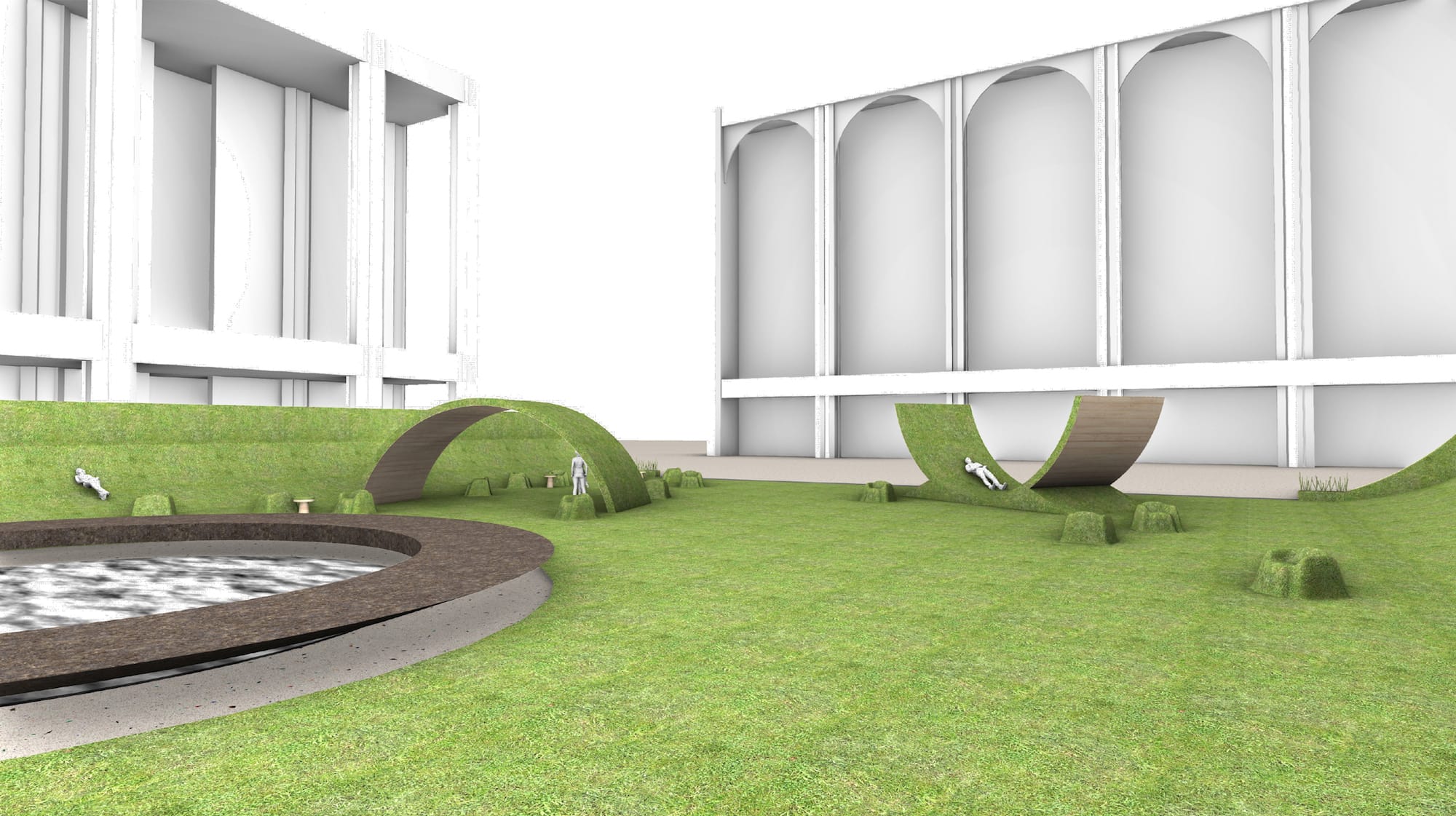 "I immediately thought that by changing the ground surface from hard paving stones with no seating to a material like grass, suddenly anyone would be able to sit anywhere,” Lien said in a statement.