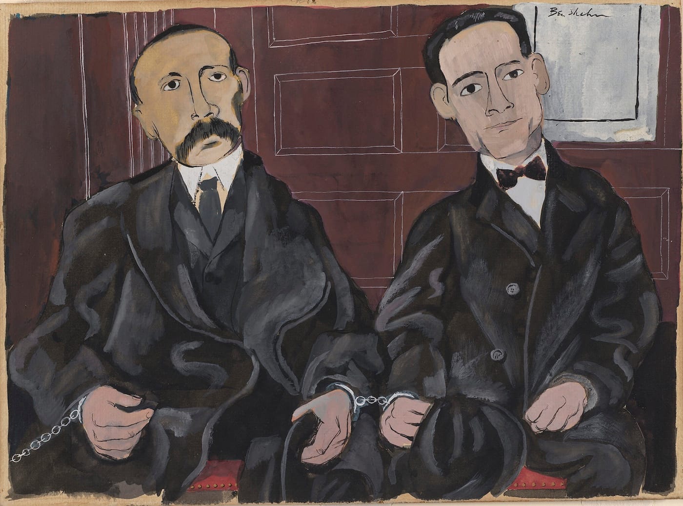 The pictures by Shahn and Gellert are of particular interest, with Shahn’s contribution centering on the trial and execution of the immigrant Italian anarchists Nicola Sacco and Bartolomeo Vanzetti — still a hot-button issue at the time, five years after their deaths. While Gellert’s submission is not on view (a wall text describes it as “depict[ing] philanthropists and politicians consorting with gangsters”), the works included here — lithographs for a book called ‘Capital’ in Pictures (1933), a visual companion to Das Kapital by Karl Marx, and silkscreened broadsheets illustrating Century of the Common Man (1943), a wartime speech by FDR’s vice-president, Henry A. Wallace — retain their polemical power.