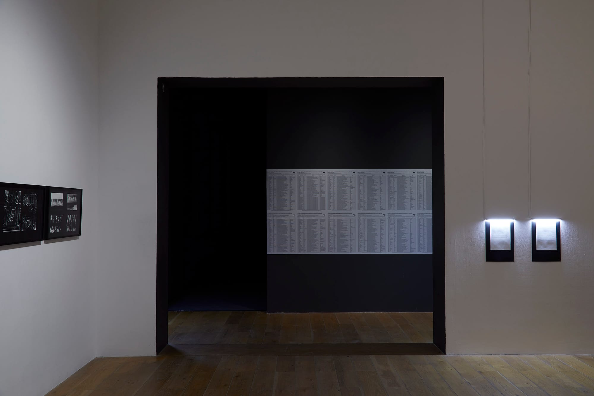 In the 1980s, Rhodes tried to move her work beyond the gallery setting, with a highly dynamic series, Hang on a Minute (1983-1985), of one-minute collage videos co-directed with Joana Davis, which were shown on Britain’s Channel 4. Highly political, this experimental series was discontinued after six episodes. Rhodes’s latest attempt to bridge the gallery and public space, List of Deaths (2019), comprises of a panel running across a single wall, with a list that enumerates when, where, and under what conditions migrants and refugees have died in Europe (the list is ongoing, and is being compiled by a nonprofit organization called UNITED for Intercultural Action). And while this latest attempt does not possess the electrifying quickness of thought and image shared by Rhodes’s earlier works, it is a testament to her enduring desire to reactivate and reinvent cinema as a viable expression of protest. What emerges forcefully from the entire exhibition is the degree to which Rhodes has been able to merge her lasting interest in language as a living and malleable thing — and therefore also prone to manipulation — with her broader socio-political concerns. Her career has been fueled by the ardent belief in cinema’s potentialities, in the fact that, as Godard has said, images indeed think — and it is the artist’s task to investigate and to question the solidness of their thinking.