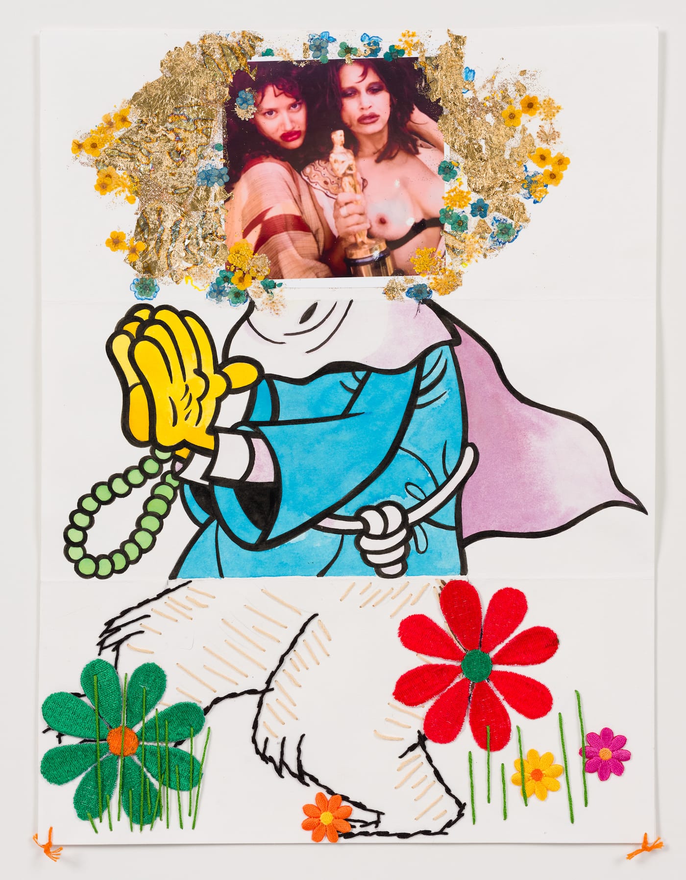 Over the next year and a half, Bowman diligently mailed out and received packages. Her exquisite corpse project grew to 70 drawings featuring contributions from over 200 artists, filmmakers, writers, musicians, and curators, which she released as a book last year. The list of participants reflects Bowman’s creative circles in New York and LA, as well as their families and students, and artists she found through Instagram.