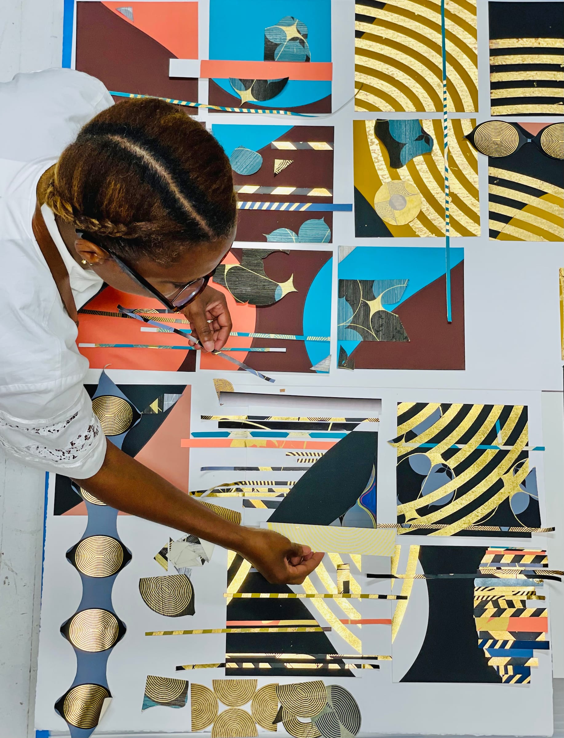 Inspired by the gilded artworks of the African diaspora, the Art Deco movement, and Gustav Klimt, Hunt was known for her intricately precise works.