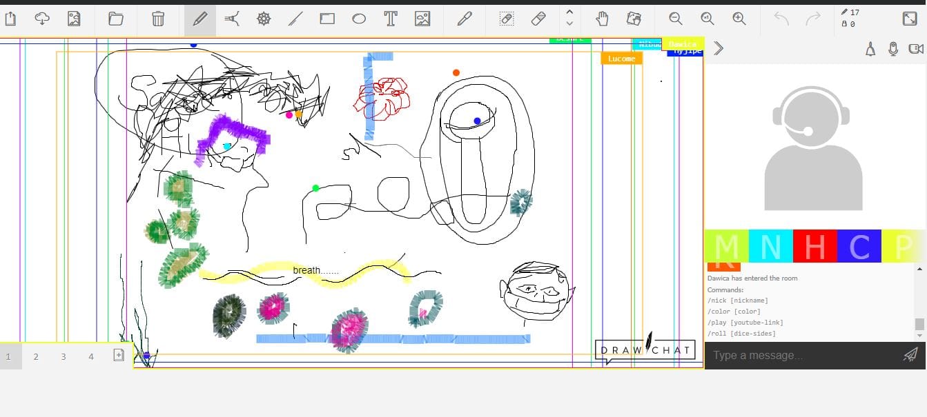 4:10pm EDT: In room 6, participants are drawing simultaneously in the drawing app. Paskal encouraged them to “embrace messiness”.