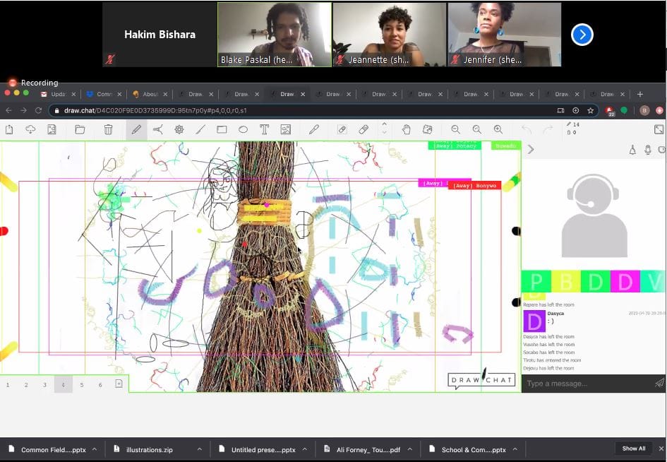 4:25pm EDT: Participants are asked to share their experience of creating the collaborative drawings. Paskal is reading the responses. “It was relaxing but I disoriented at first,” one participant says.