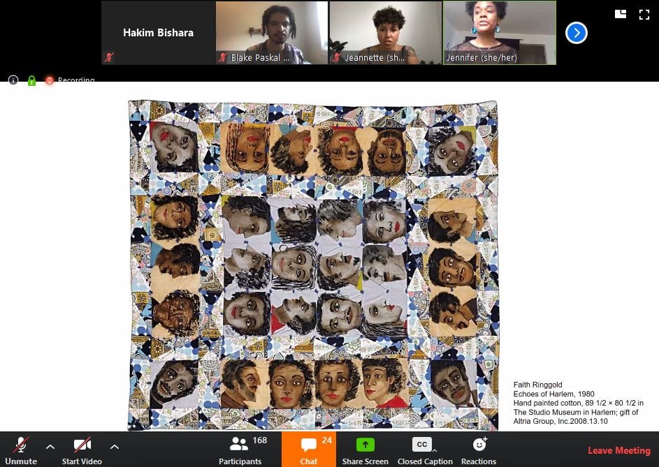 4:02pm EDT: Jennifer Harley, school and community coordinator at the Studio Museum in Harlem, starts the meeting. She says the meeting will include “collaborative art-making”.