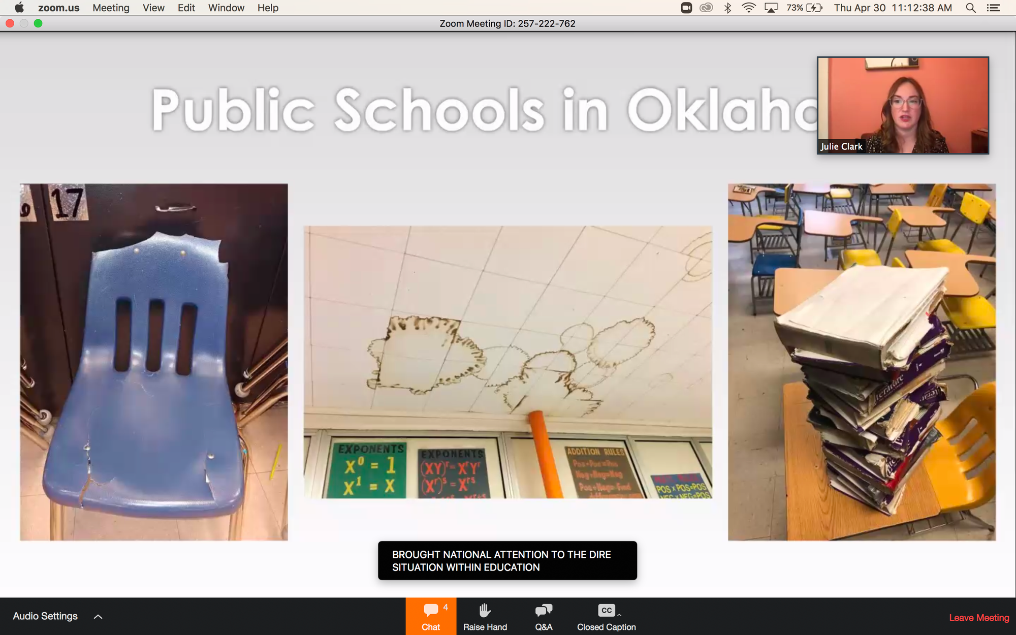 2:14pm EDT: OK often ranks 49th or 50th among national education; Clark shares harrowing images of the conditions in Oklahoma classrooms. In 2018, there was a teachers’ strike across the state, and while teachers received a pay raise, there was little restoration to funds and programs that were eliminated.