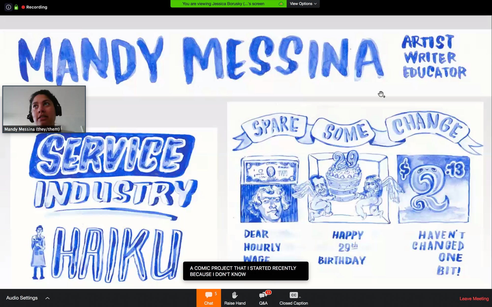 2:58pm EDT: Messina has been working on a really wonderful comics series about their experiences in the arts.
