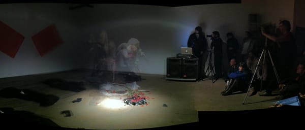 Tonight, Daniel Larkin and I will be liveblogging night two of the Maximum Perception Performance Festival at the English Kills Art Gallery in Brooklyn. Last night's liveblog can be found here [http://hyperallergic.com/16679/liveblogging-maximum-perception-fri-night/] and tonight we're going to be t