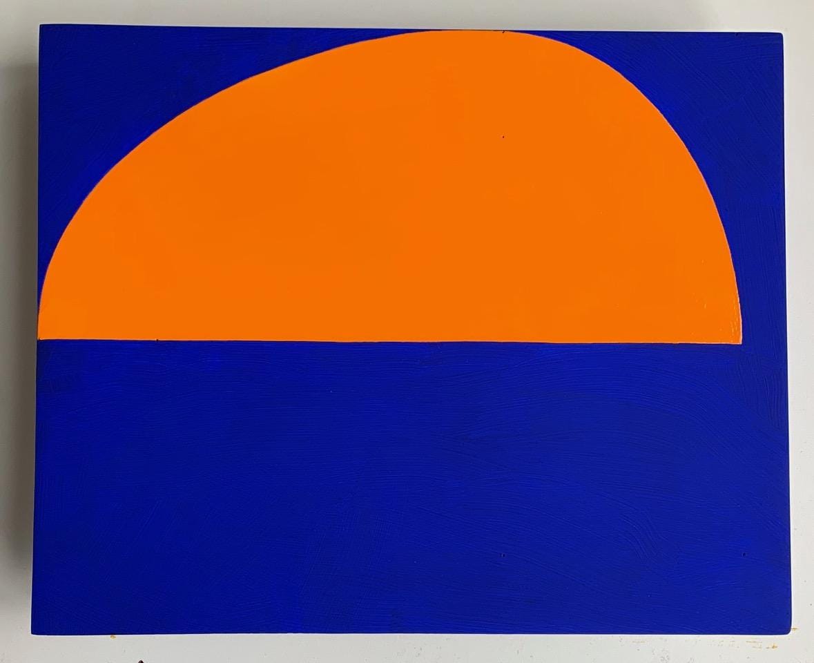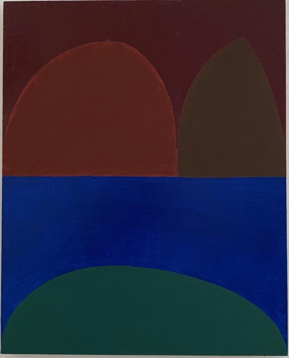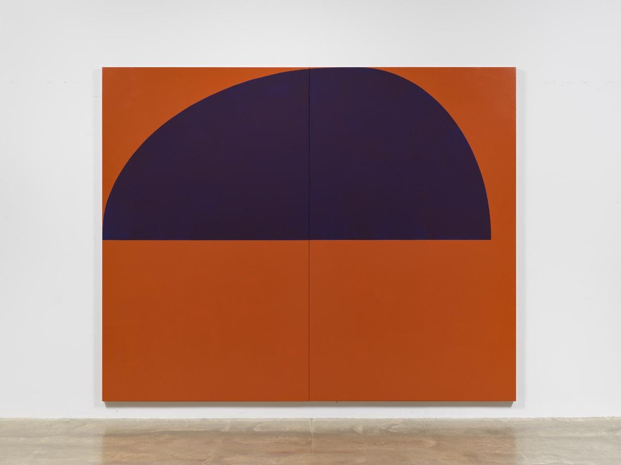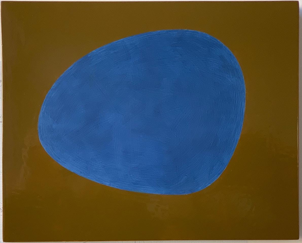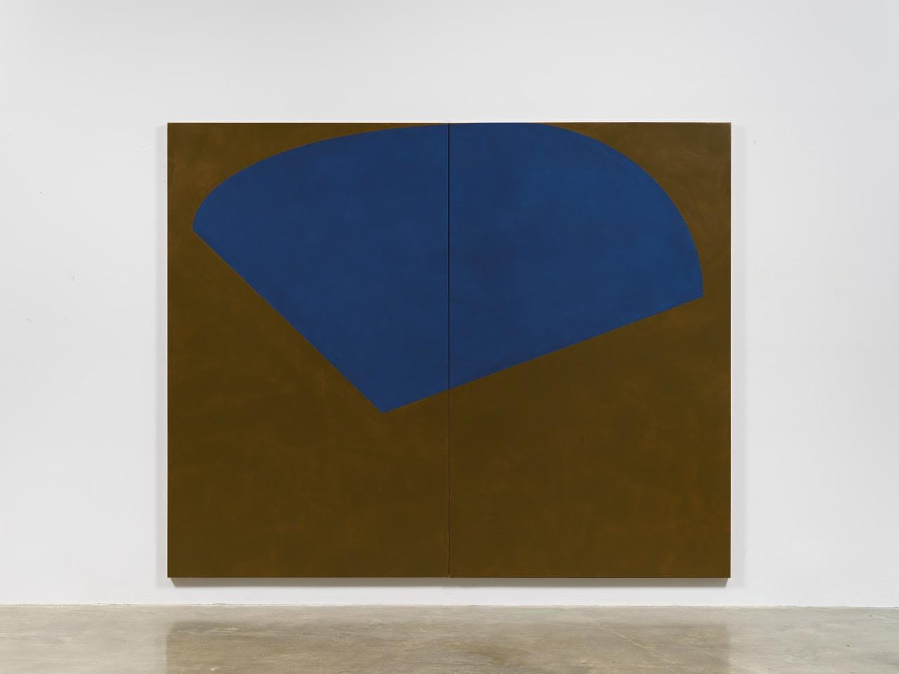 The painting was done on two panels. The position of the blue form and the space it occupies are not arbitrary. Both were worked out in advance, with special attention paid to making sure that the form in each panel takes up the same amount of space as its counterpart.
