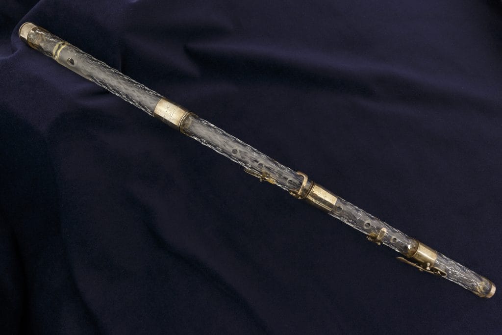 The instrument is part of a collection held by the Library of Congress and was made for James Madison in 1813, on the occasion of his second inauguration, by Claude Laurent of Paris. Laurent’s flutes are rare treasures, with only 185 examples known in the world, but the one made for Madison is especially unique, one of only two that are confirmed to be made of crystal rather than potash glass.