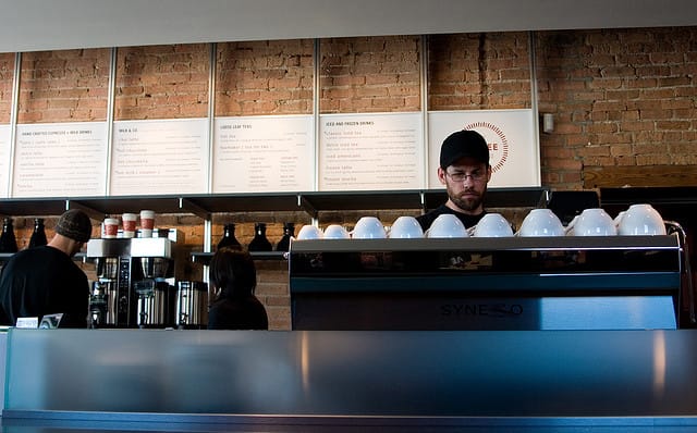 A certain kind of coffee shop, too, falls in line with this approach to design. The Coffee Studio in Chicago, Coffee Bar or Ritual in San Francisco, or Chinatown Coffee Co. in Washington DC. New York local are Ground Support in SoHo and the vaguely East German Cafe Ost in, appropriately, the vaguely East Village.