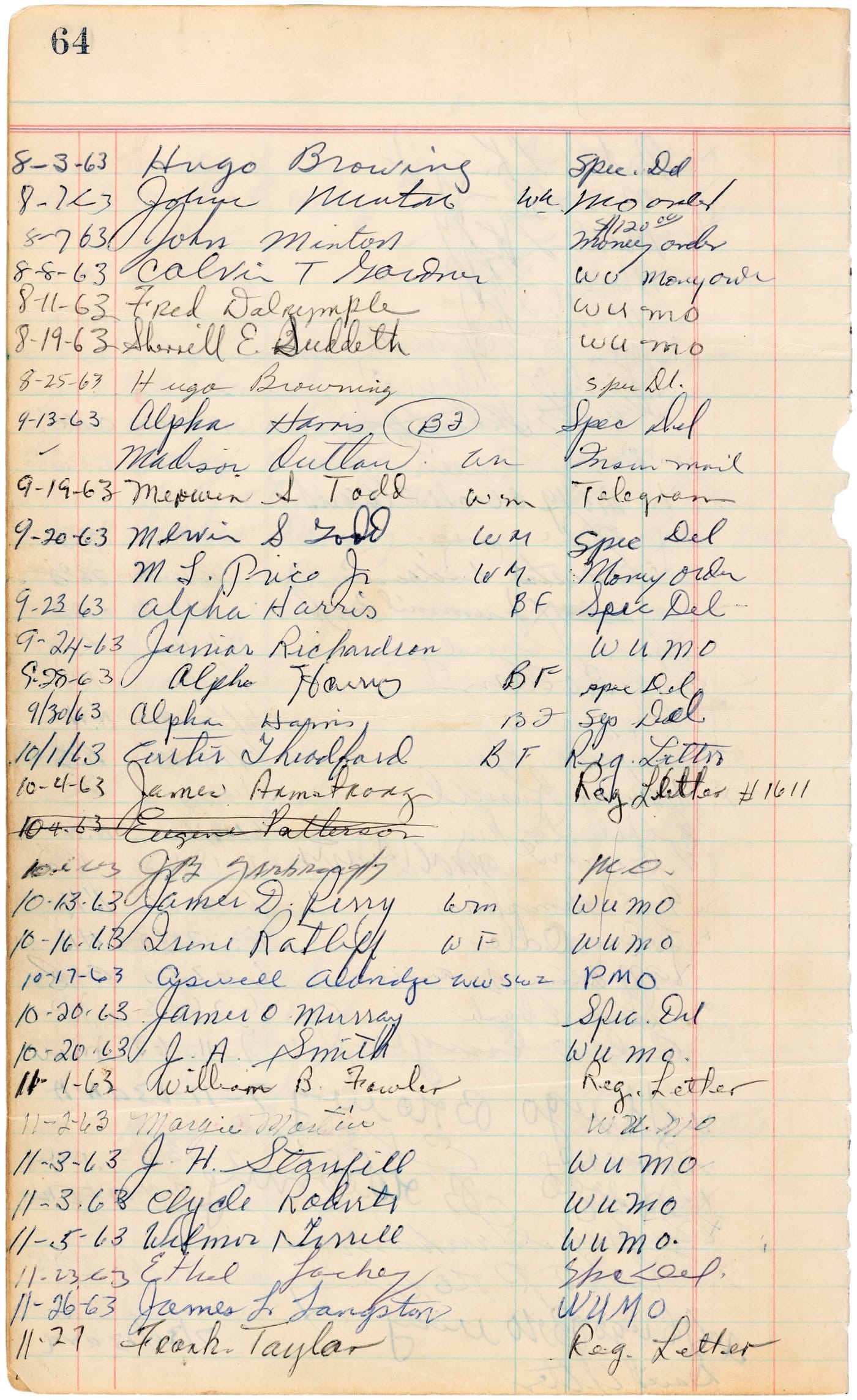 The ledger, which includes entries from March 4 through November 27, 1963, dates to the period when King wrote his famous "Letter from a Birmingham Jail," a manifesto on nonviolent resistance and one of the most important written records of the Civil Rights era. There are 12 signatures by King in the logbook in total.