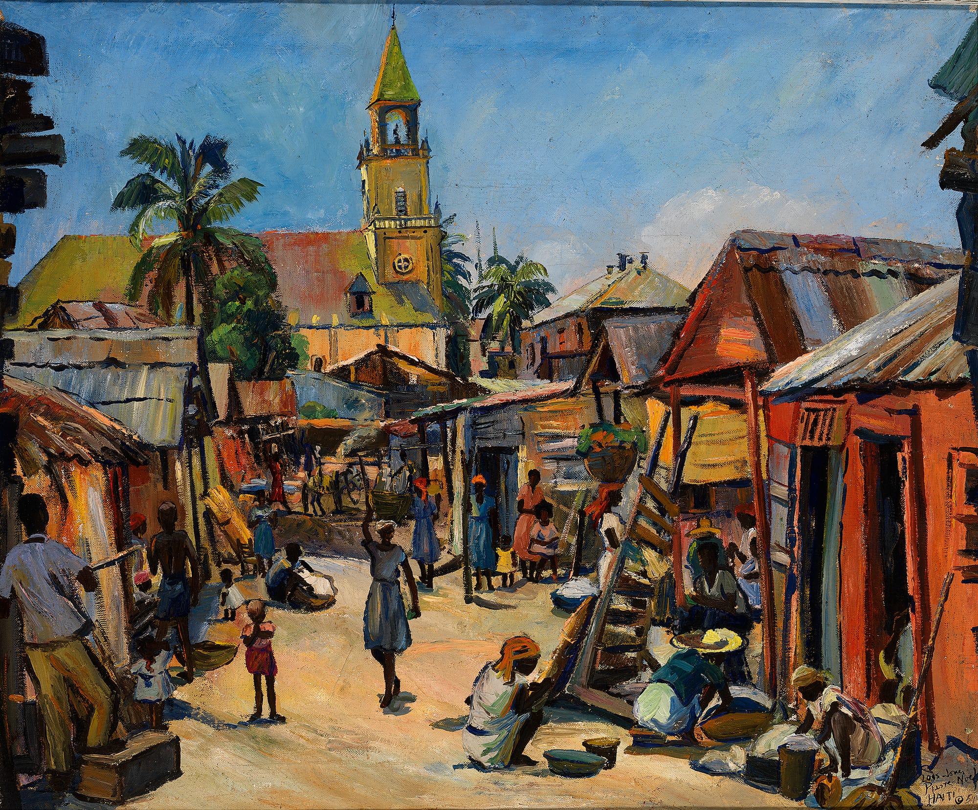 That premise guided the writing and research of VanDiver’s new book Designing a New Tradition: Loïs Mailou Jones and the Aesthetics of Blackness, published by Penn State University Press. An assistant professor of African American Art at Vanderbilt University, VanDiver largely organized the text around significant locations in Jones’s career: Washington DC, Paris, Haiti, and Africa (particularly West Africa). The book surveys decades of Jones’s work, from the 1920s to the 1990s. Inevitably, this covers major shifts in American history, including “cultural conceptions of blackness and associated definitions of what constitutes black art,” VanDiver writes in the introduction.