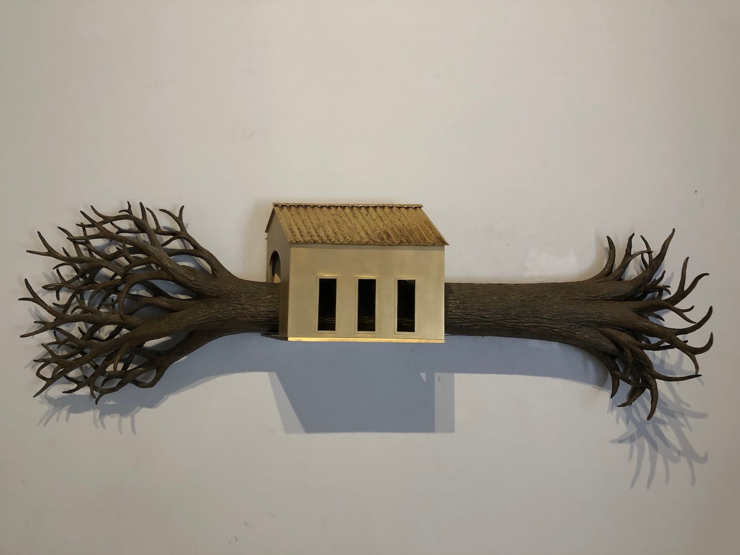 One of the most powerful installations in the show, Gigi Scaria’s Stuck draws attention to the painful truths about migration, displacement, and alienation within urban topographies. What makes the Delhi-based artist’s work even more engaging is that the components of the kinetic installation move back and forth, making it popular among visitors.
