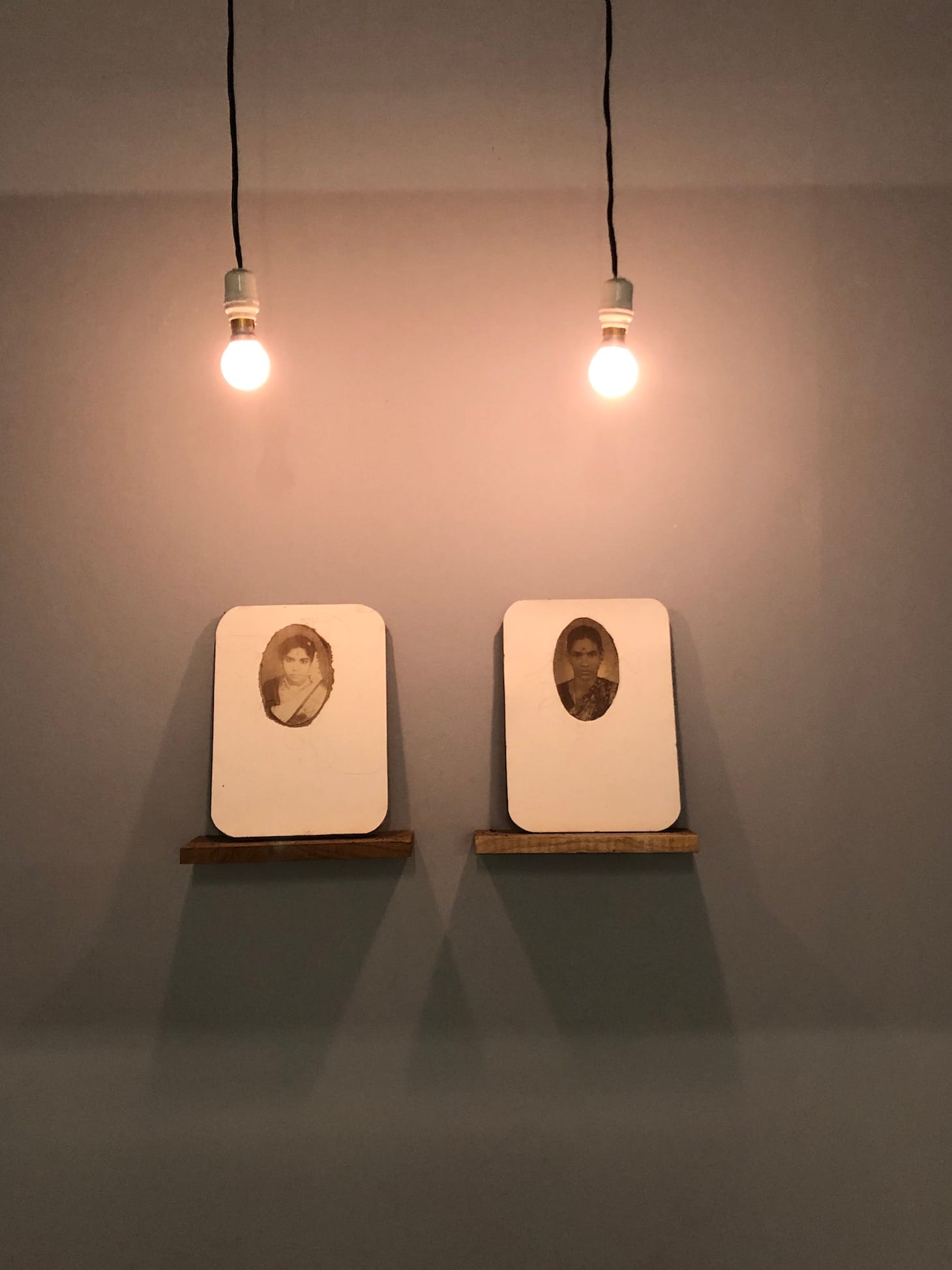 Bangalore-based artist Indu Antony’s installation Aval comprises a series of found photographs of people, especially images of women, that she picked up in various places, from the streets of India to antique shops. She underscores her feelings of resonance with these ephemeral found photographs by stitching their edges with her own hair. A fascinating reflection on the body, memory, and time.