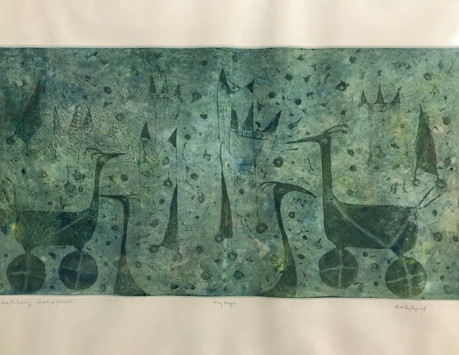 Ernakulam-based Sathyapal T A is an artist and writer who has spent months living among the indigenous people in Bastar, Ektal, Barsur, and other regions of Chhattisgarh, India. The influence of the art he encountered comes through in the line work and earthiness of his paintings, which also evoke the modernist art of Paul Klee.