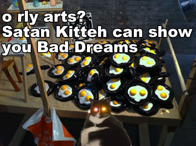 Lolcats stopped by the office today and asked the staff if they could write a review of a show. Wanting to get the non-hypoallergenic felines out of the office, we decided to take the Lolcats to the closest exhibition, seven @ SEVEN at the Boiler.