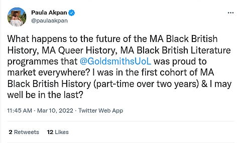 “Following a period of discussion between key stakeholders including [the 2019] activists, members of Goldsmiths Race Equality Group and senior leaders, a working group re-convened in July 2021 to oversee the development of all-staff anti-racism training. The training contract was advertised through an open procurement in August - September 2021 however the training tender review group decided none of the submissions were adequate as they did not convey a strong understanding of systemic and institutional racism. The contract was [then] re-advertised.”