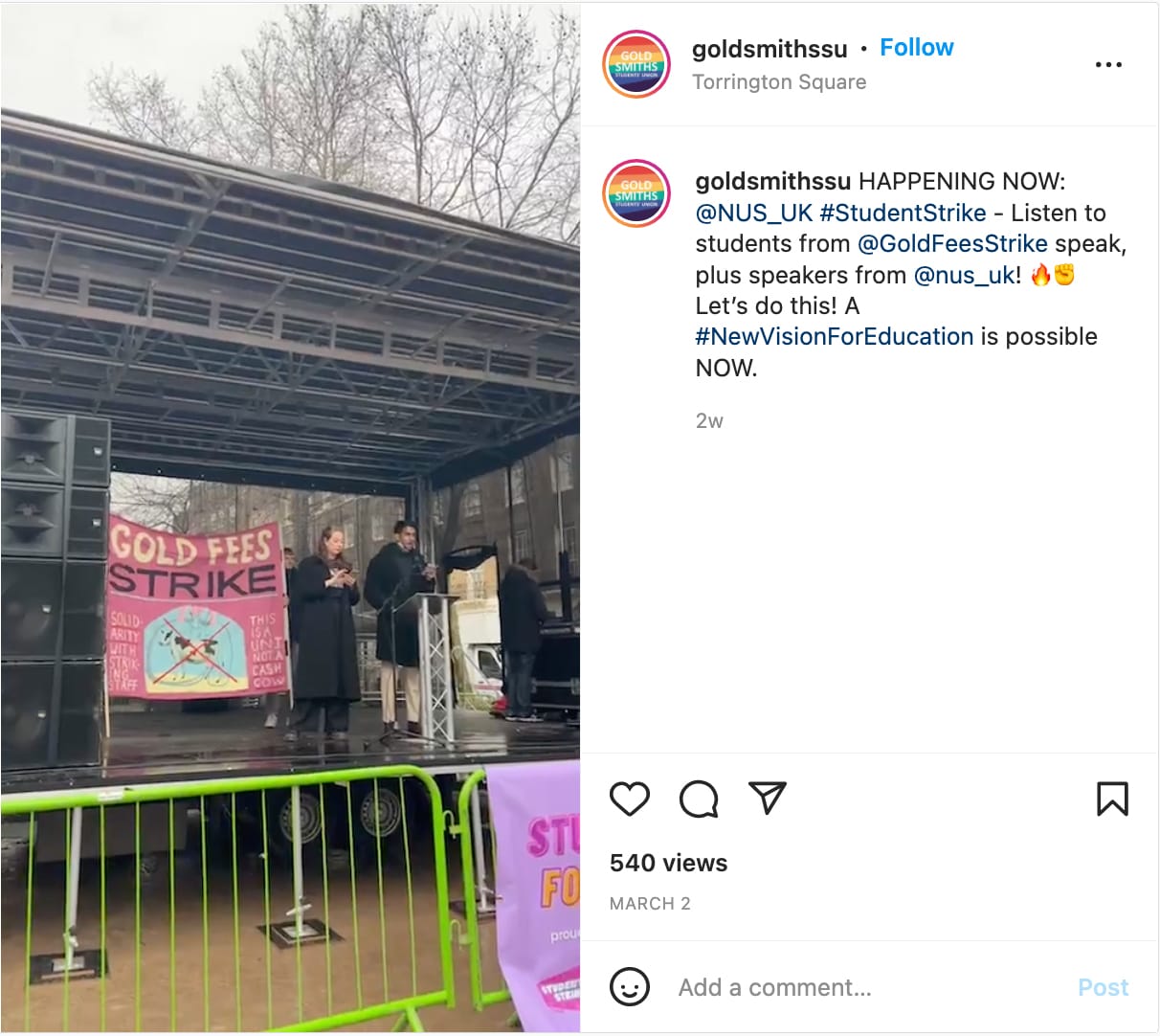 With such tensions building for a few years, tactics like withholding tuition have become as commonplace as withholding rent in the UK — with some students living in university residence halls resorting to this strategy as well. Fortunately for the nation, which left the EU in 2020, graduate students, teachers, and other academic staff have trade unions like the University and College Union (UCU), founded in 2006 when two unions merged. The organization represents faculty and staff at 140 higher education institutions; Goldsmiths has representatives in most academic and other departments, including art, design, psychology, sociology, and more.