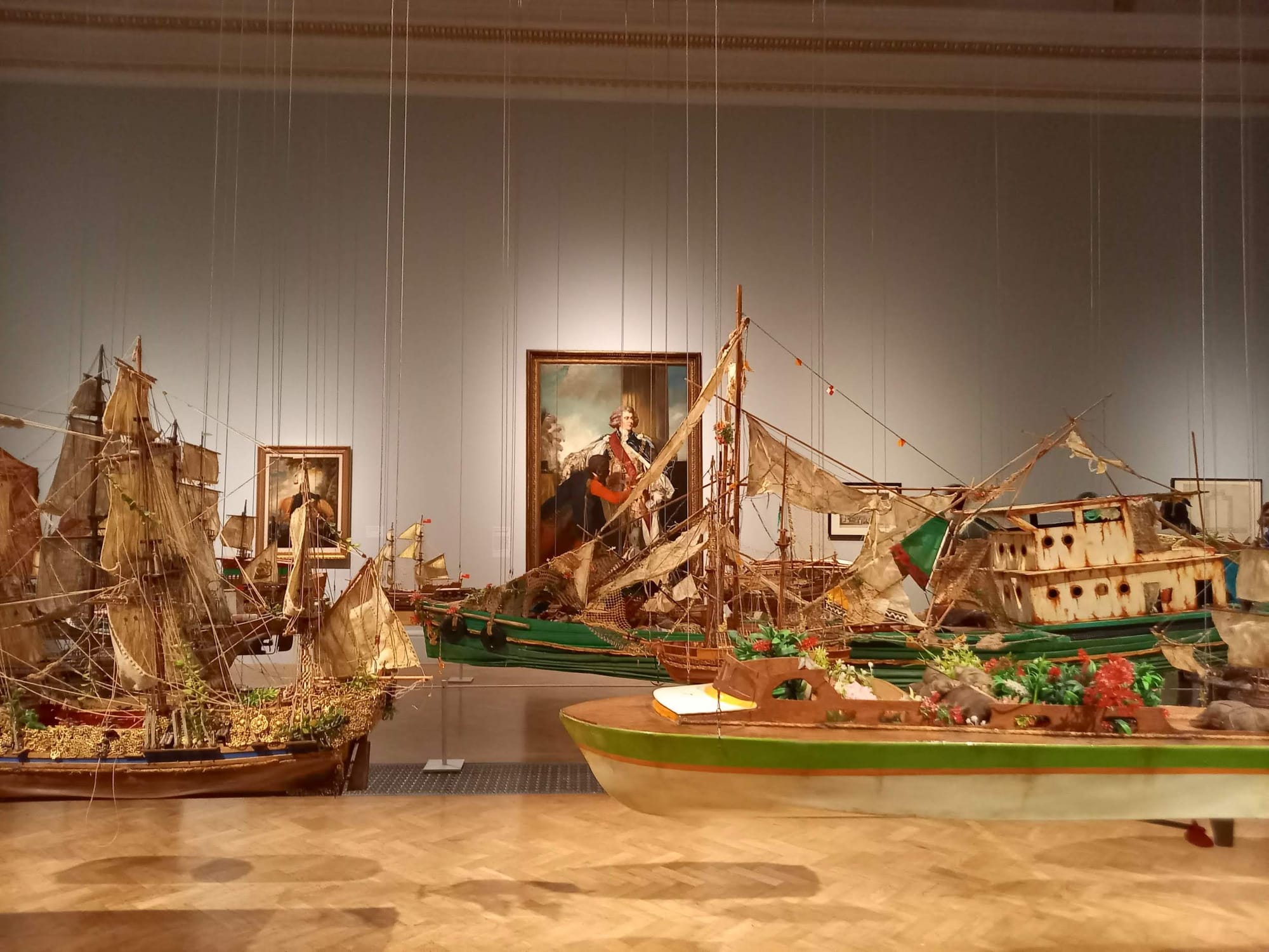 The urgency of examining colonialist history and the tendrils of its influence that continue to underpin British society is most salient in the final room, which asks “Where to from here?" The Colston statue freshly in mind, recent RA school graduate Olu Ogunnaike takes Trafalgar Square’s Fourth Plinth, a continuing symbol of public art and statuary as a platform for political statement, and recreates it in waste faux-hardwood, referencing both luxury furniture exported globally and the wooden ships by which enslaved people were transported. There can be no overstating the importance of this show in addressing colonialism, as well as art’s role in documenting and encouraging the public to actively explore these issues and their own place in society. It sets an example for how we can not only look to the past to evaluate it, but, crucially, how it can inspire a collective self-reflection and change for the future.
