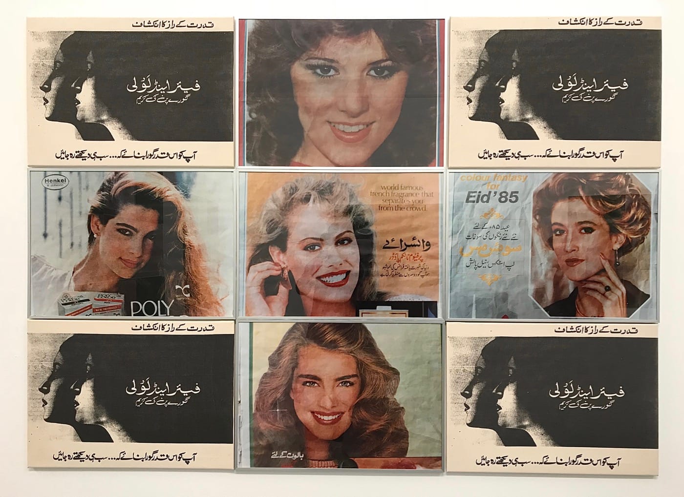 Like “Fair and Lovely” (1985), which comments on the promotion of skin whitening in Pakistan, “Sonay Ke Chirya” uses mixed media to comment on how Western advertising has changed Asia. Like many of his contemporaries, Araeen criticizes the West’s glorification of whiteness through entertainment and advertising. Here, he entangles white cultural hegemony with the economics of black and brown denigration. Those goats falling through an emerald sky (green is one of the colors on Pakistan’s flag) have erections because they symbolize the stereotypical hot-blooded yet dimwitted foreigner, a stereotype Araeen fought against while living in waspy, insulated London. For evidence of his struggle in this regard, look no further than a recording of his “Paki bastard (Portrait of the artist as a black person)” performance from 1977, in which the artist plays an immigrant worker who’s beaten, blindfolded, gagged, and murdered.