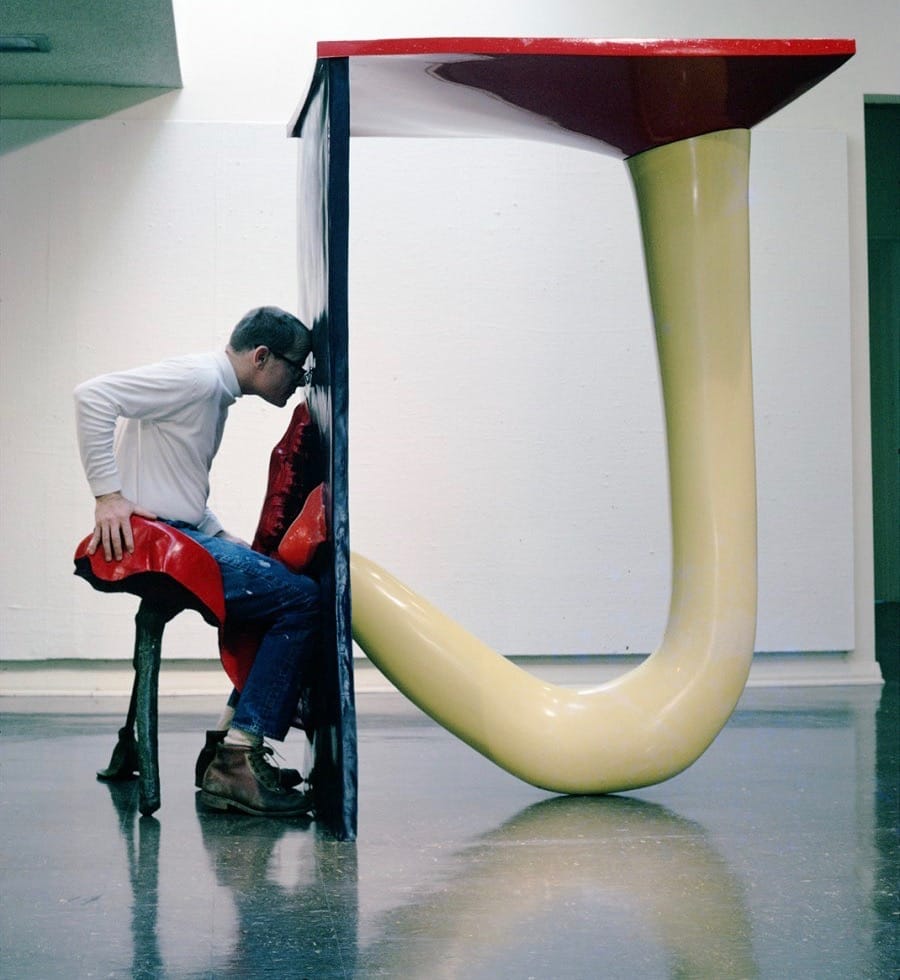 Selz wanted to respect the spirit of the artwork by steering the show away from making “a definitive statement” about funk. Nicole Rudick quotes Selz in her essay in the catalogue accompanying the exhibition What Nerve! (2014) at the Rhode Island School of Design: “I was merely interested in pointing out something that was going on right now with a few examples … from the background that have to do with the developments as I see it [sic].” The point of Funk was to offer viewers the chance to judge the art at face value. Selz amassed nearly sixty objects (we now recognize funk as extending into any medium, but Selz focused his exhibition on sculptural objects) for the exhibition and implicitly gave each equal billing under the singular title of Funk. Some pieces were small, while others were gargantuan installations. Some were created by Beat writers in the mid-1950s while others were created by hippies in the mid-‘60s. Some of the objects were pale while others were as brightly decorated as a venomous creature. Some were figurative, some surreal, and some vaguely squishy. The diversity of works ensured that a single definition of funk was impossible. If everything in Funk was funky, then sure, why not throw in the works of Shakespeare and Dürer?