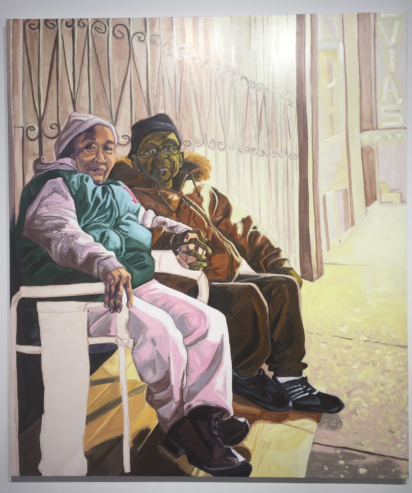 But there’s also optimism in the profound beauty of just existing — living out a story that may not get told, but thrives and blossoms anyway. At Casey Kaplan, Jordan Casteel’s oil painting, “Yvonne and James” (2017) depicts an elderly black couple sitting casually for a portrait. The color is rich, and the depth preternatural. The implied simplicity and fullness of their lives is moving, especially when, like me, you have relatives who look like them — and, I’d hope, when you have neighbors who look like them, too.