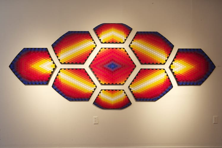 In his recent solo exhibition, HUE at Praxis gallery this year, Contreras created an abstract installation of vinyl and resin that was both colorful and illusionistic — like a scrambled, yet aesthetically more pleasing, advertising campaign. It is perhaps ironic then that Venezuela is a country with a reputed history in Geometric Abstraction.