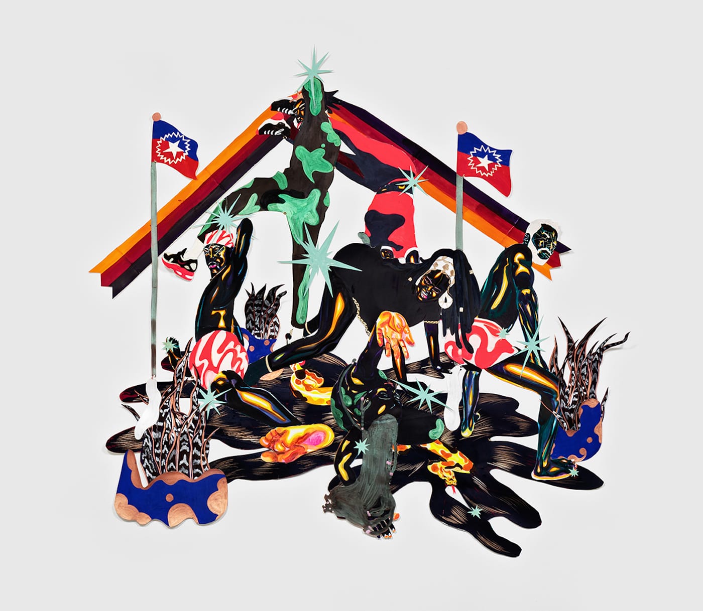 Feel Me? is the first solo show at Night Gallery featuring Khari Johnson-Ricks's delicate and ornate painted cut-paper constructions. His fantastical tableaux feature Black figures in scenes of solidarity, camaraderie, and kinship with each other, moments of celebration and healing along the struggle for liberation.