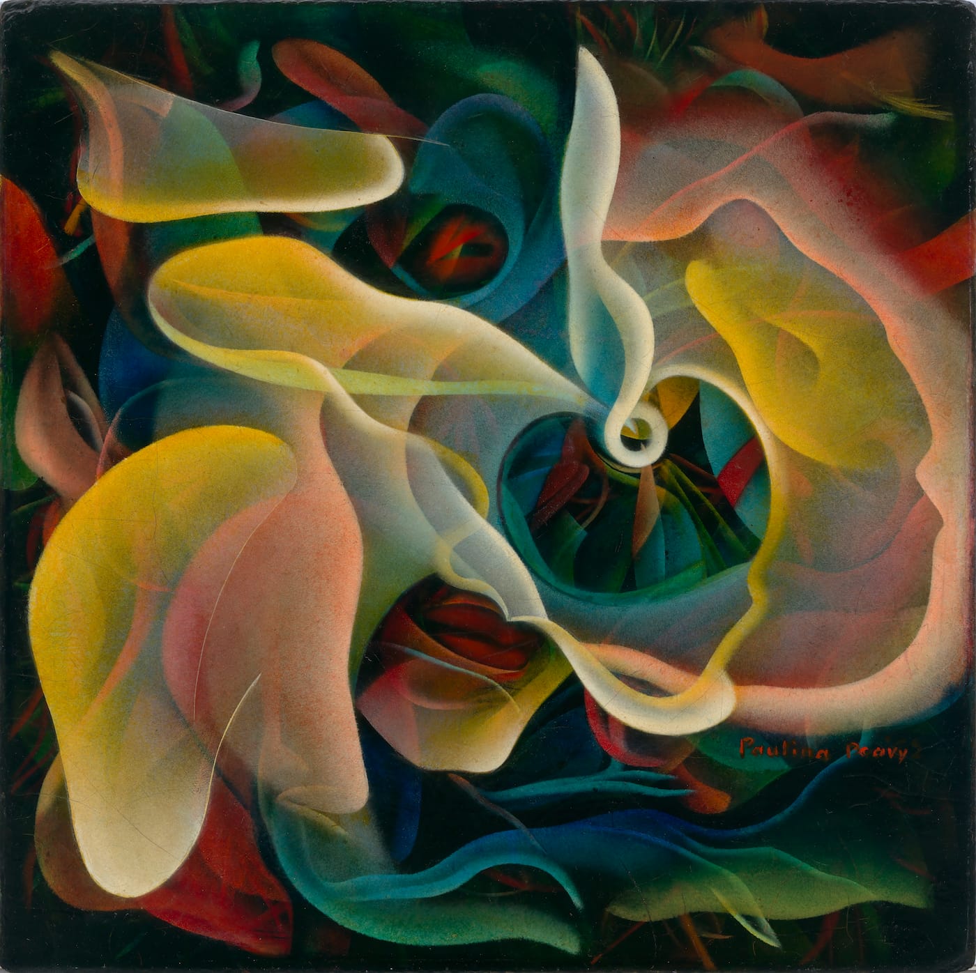 Paulina Peavy came of age as an artist during the emergence of American abstraction in the 1920s and '30s, studying with Hans Hofmann at Chouinard Art Institute in 1931, and falling in with a group of California post-surrealists associated with Lorser Feitelson. She was also deeply connected to cosmic, spiritual forces, claiming to be able to channel an entity named “Lacamo,” whom she said guided her in her painting. Under the influence of Lacamo, Peavy would keep adding layers to paintings over the course of years or decades, with each layer representing a new revelation. Curated by Laura Whitcomb, Paulina Peavy: An Etherian Channeler is the first West Coast show of Peavy’s work in over 75 years, offering an overdue reconsideration of an important figure at the intersection of abstraction and the occult.