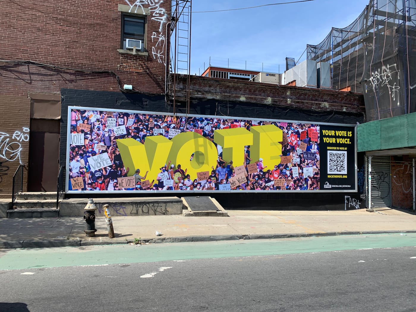 Rogel says they chose their sites strategically and targeted their posters for specific communities. In addition to messages inspiring people to vote, several in English and Spanish, the posters contain a QR code which leads to a site allowing people to register in 13 different languages. One particularly eye-catching design depicts a raised fist decorated with colorful Caribbean flags.
