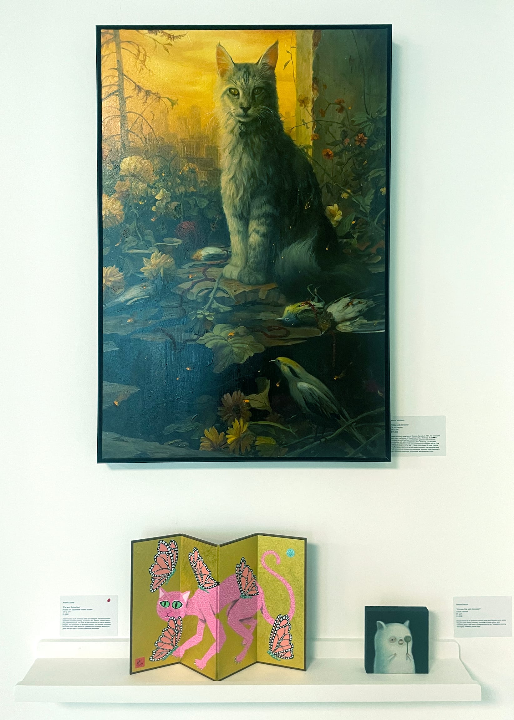 The exhibition brings together feline-loving artists from around the world to raise money for cat charities.