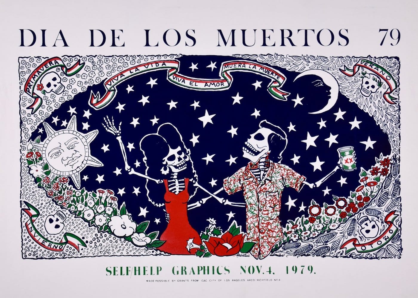 Emerging from the Chicano Movement of the early '70s, Self Help Graphics is more than an art studio: it is a hub of Latinx culture and community, organizing events like the wildly popular annual Día de los Muertos Celebration in East LA, which it coordinated from 1974 to 1985. Annually since 1983, it has commissioned a local artist to create a Día de los Muertos Commemorative Serigraph, providing a diverse, multi-generational array of interpretations of the holiday.