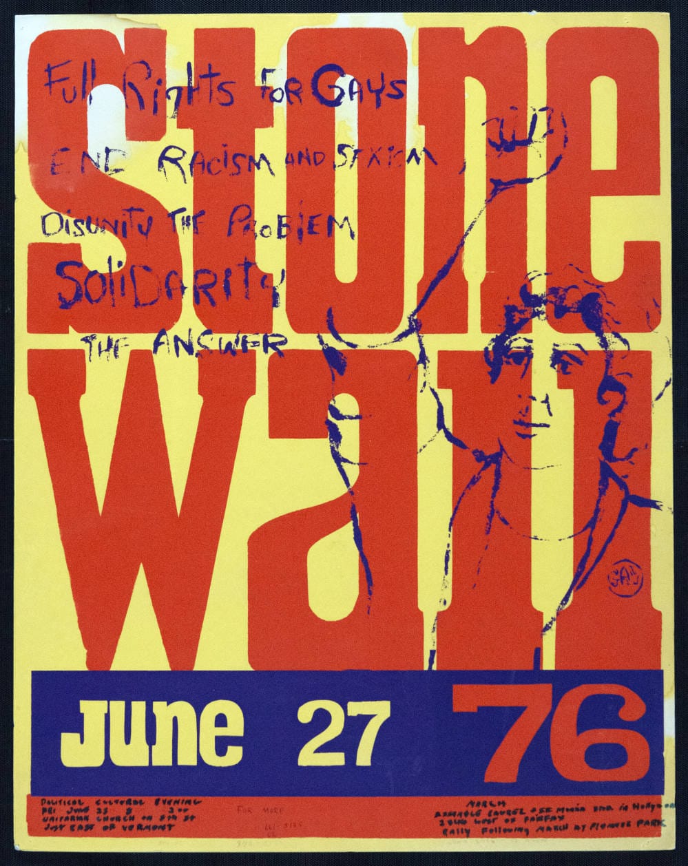 The archives are accessible for research via a reservation system, though it is currently closed due to the pandemic with no opening date announced. The ONE Gallery in West Hollywood, which hosts its exhibitions, is also currently closed; however, the first iteration of the multi-site exhibition Pride Publics: Words and Actions will run through July 1 on Robertson Boulevard South of Santa Monica Boulevard. Curated by Rubén Esparza and organized by the ONE Archives Foundation, the show features wheatpasted posters showcasing a multigenerational group of 28 LGBTQ+ pioneers, including Tom of Finland co-founder Durk Dehner, Black Lives Matter co-founder Patrisse Cullors, artist Paul Pescador, and writer Raquel Gutiérrez.