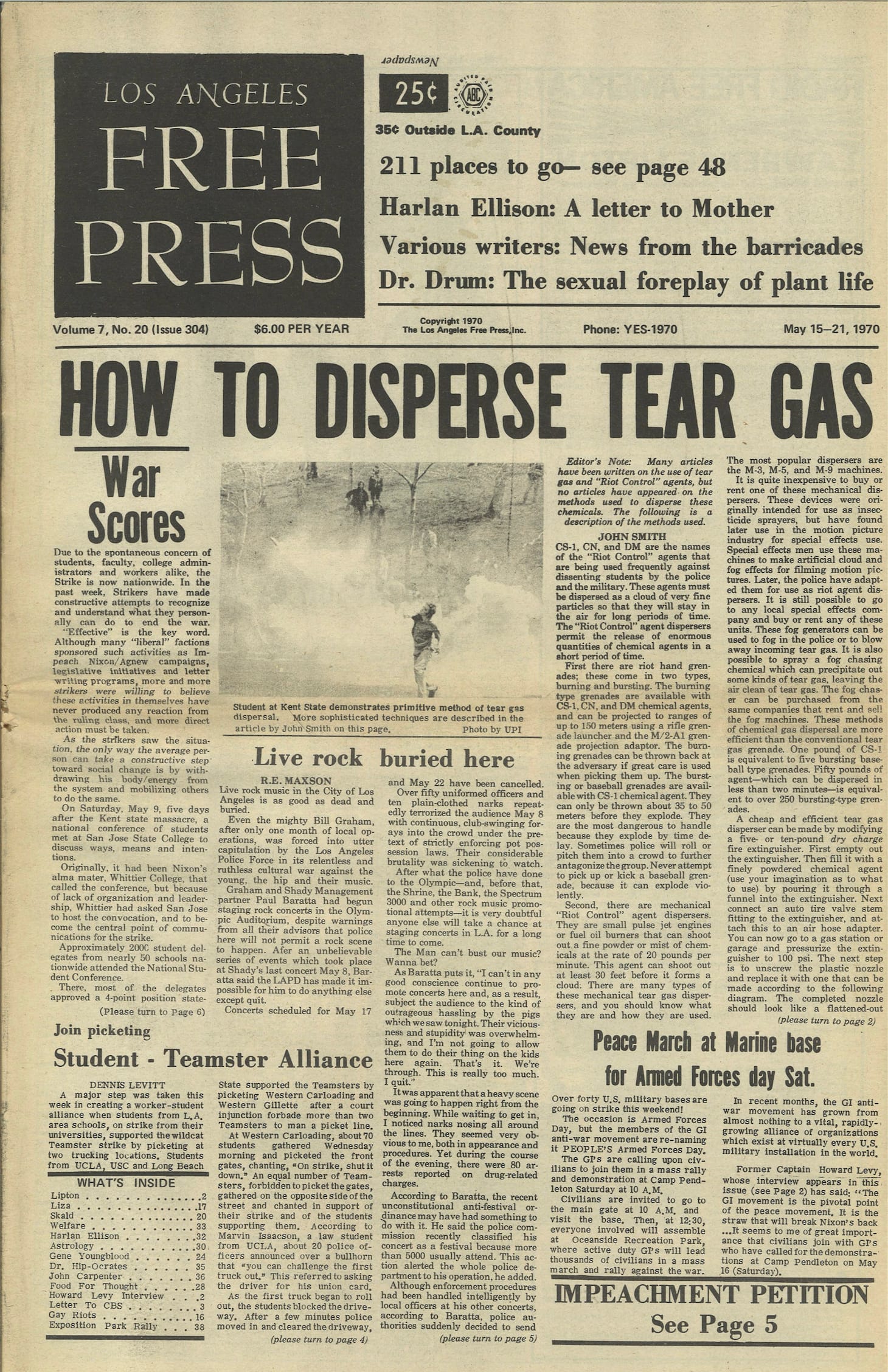 In the 1960s, Los Angeles was an epicenter of civil rights uprisings fueled by the hypocrisy of its liberal establishment. The mayor, police chief, and paper of record actively suppressed Black, Chicano, and queer liberation movements throughout the city while promoting a narrative of democracy under siege. For years, only the Los Angeles Free Press documented the many incidents of police brutality, making crucial connections between racial disenfranchisement and mass unrest.