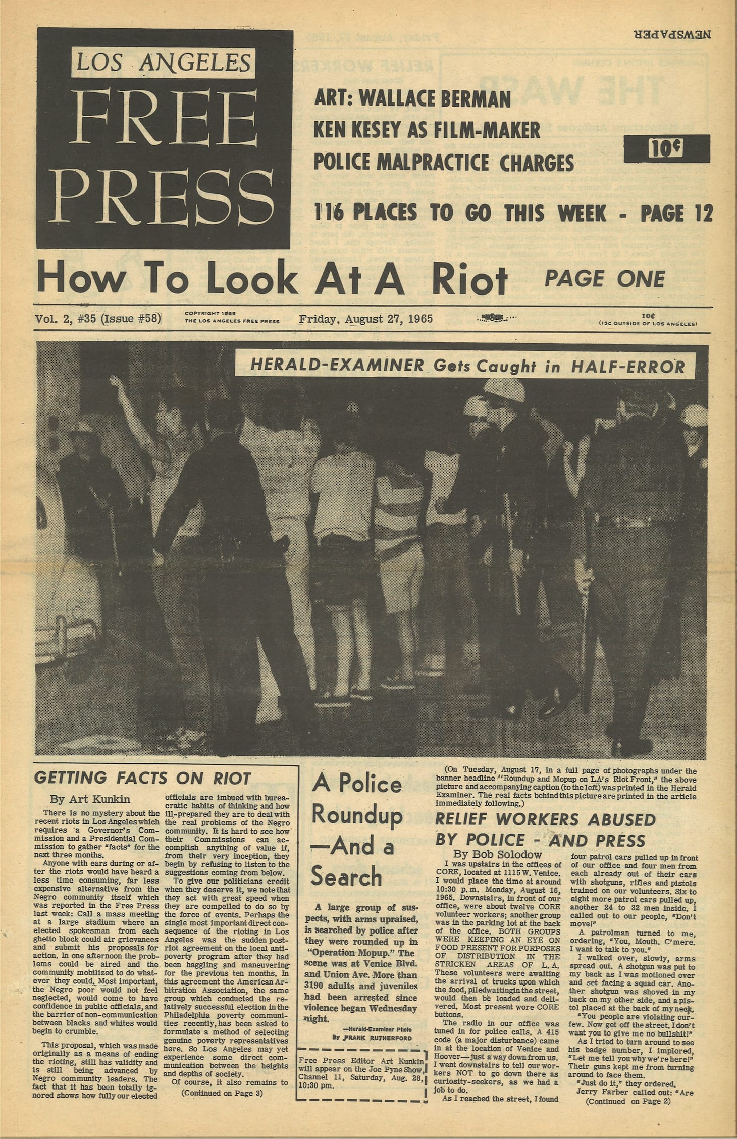 For years, only the Los Angeles Free Press chronicled the many incidents of police violence in Los Angeles, making crucial connections between racial disenfranchisement and mass unrest.
