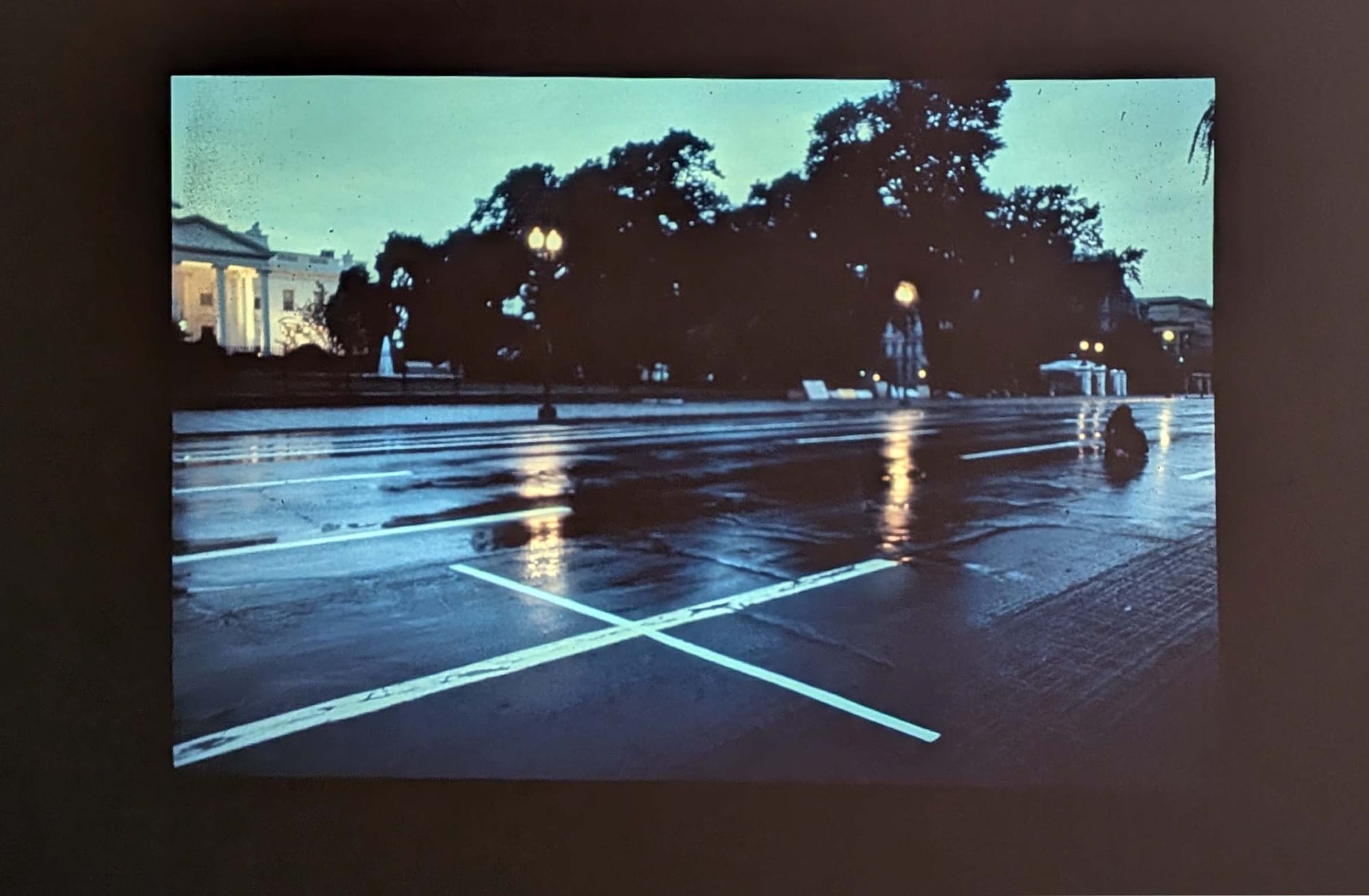Grainy black-and-white footage follows Rosenfeld's slow processional march, her body bending forward to inscribe a disobedient line. The marks read sequentially as a tally — one that adds up the dead, the disappeared, the state’s sanctioned silences. But it is also an improbable insistence that something additive and charged with possibility might still emerge from the negative. Rosenfeld repeated the action throughout the 1980s and beyond, from the Atacama Desert (March 1981) to outside the White House in Washington, DC (June 1982), letting the line migrate across sociopolitical contexts while retaining its unruly charge.