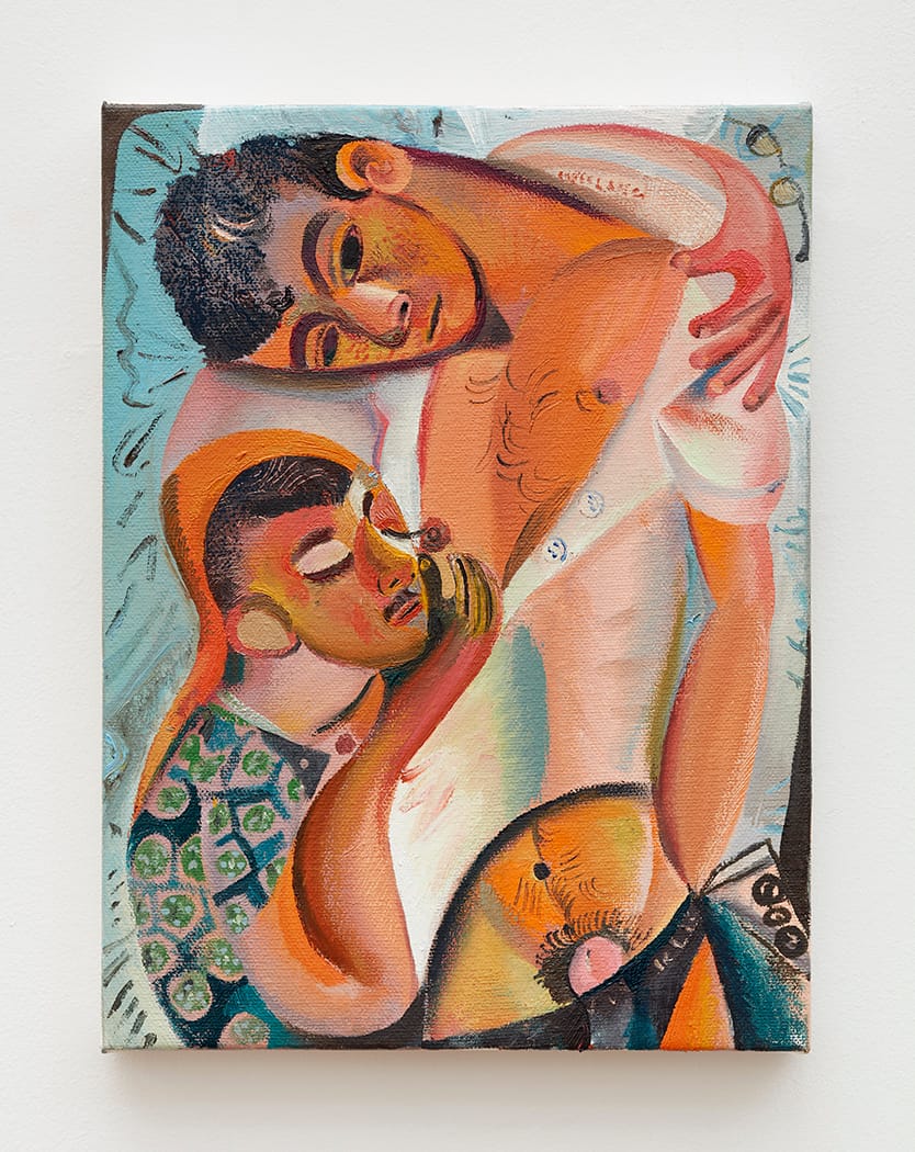The moments that Fratino depicts are transitory and fleeting and would be lost if one did not look — moments that are either too quotidian to stick out or too scandalous for “community standards” on Instagram. He is among a number of young queer artists like Salman Toor, Yuki James, Craig Calderwood, and Logan T. Sibrel, who visualize life unmediated by social media and unconcerned with what is algorithmically pleasing.