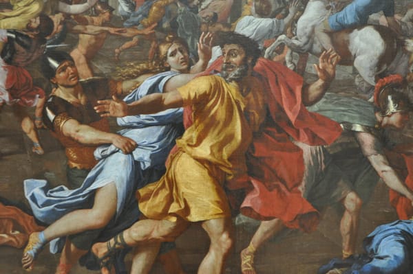 A fleeing man in Nicolas Poussin’s “L’enlèvement des Sabines (Rape of the Sabines)” (c.1637-38) — btw, I think I had Poussin overload at the Louvre. They must have 75% of the artists output.