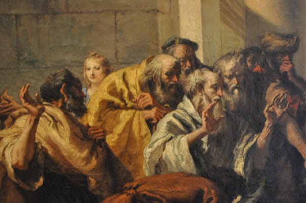A man in a work by Giovanni Domenico Tiepolo, “Le Christ et la femme adultere (Christ and the adulteress)” (1751).