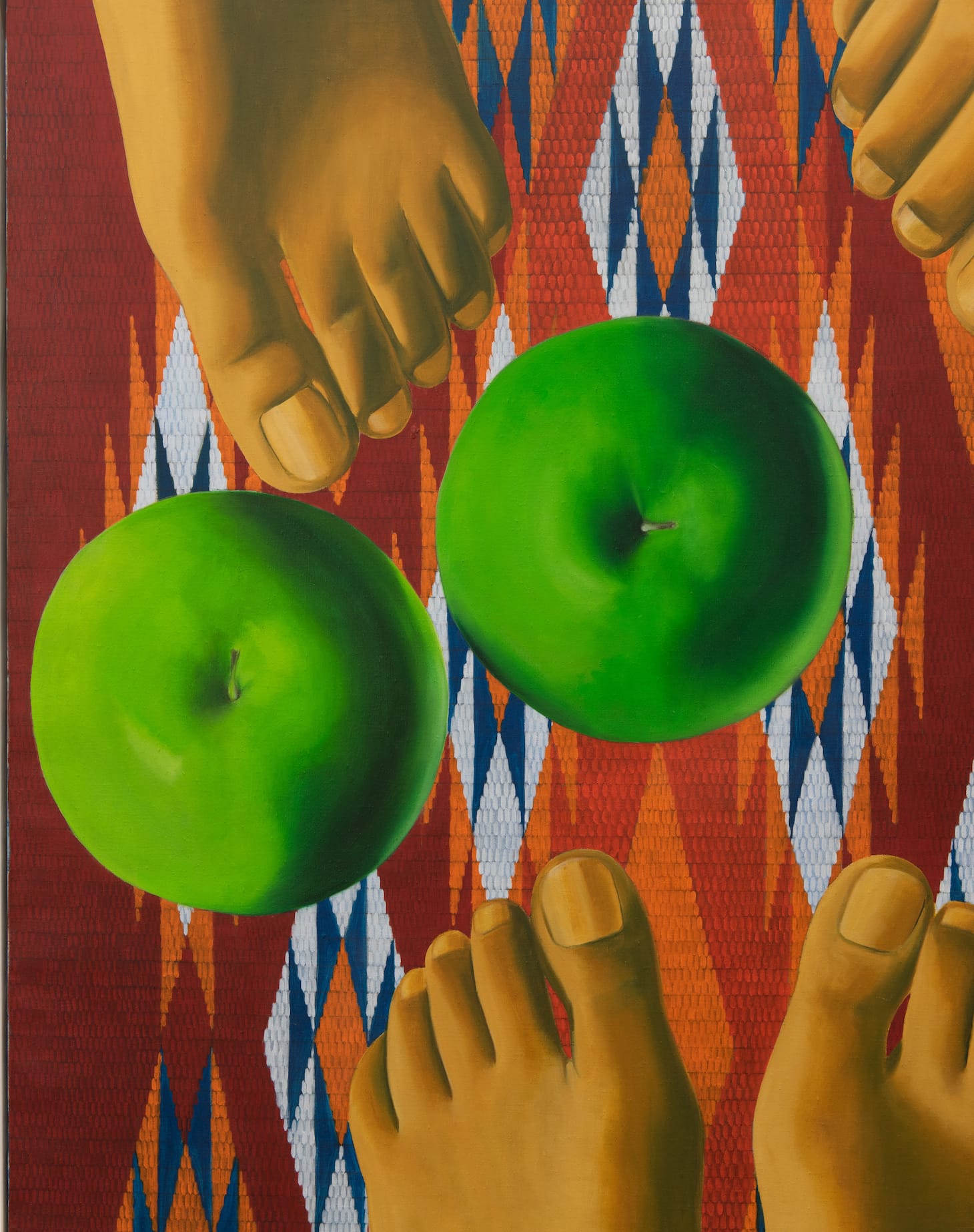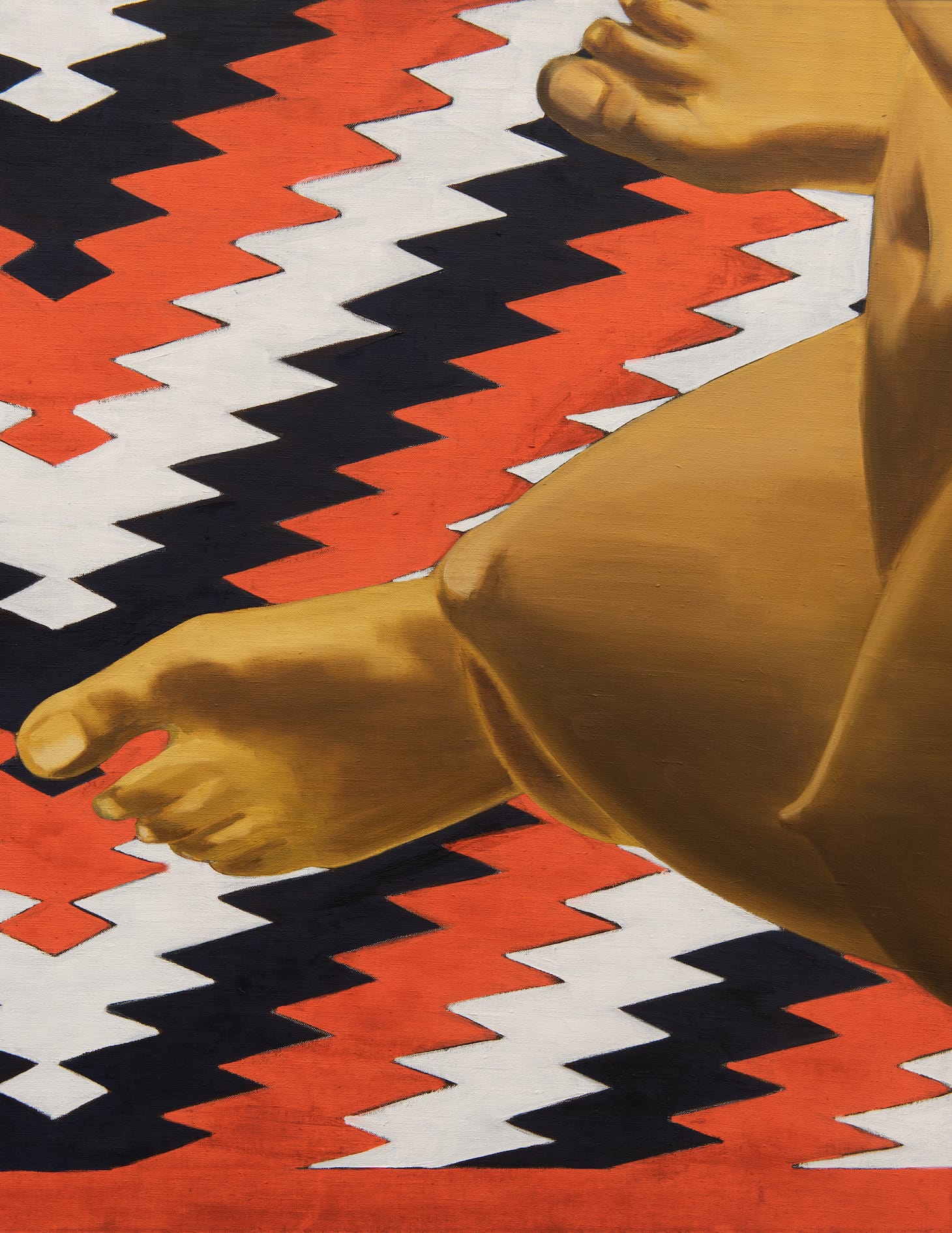 But the work that gives the exhibition its title, I Live I Die I Will Be Reborn, is Hurtado’s birthing 2019 series. These medium-size canvases again take the viewpoint of looking down at the body, the breasts and the belly, and the divided legs as new life makes its way into the world. “There is a feeling about a child in your arms that is … you know, the smell of the head, the whole thing,” she has said. “You become nature. We are all related.”