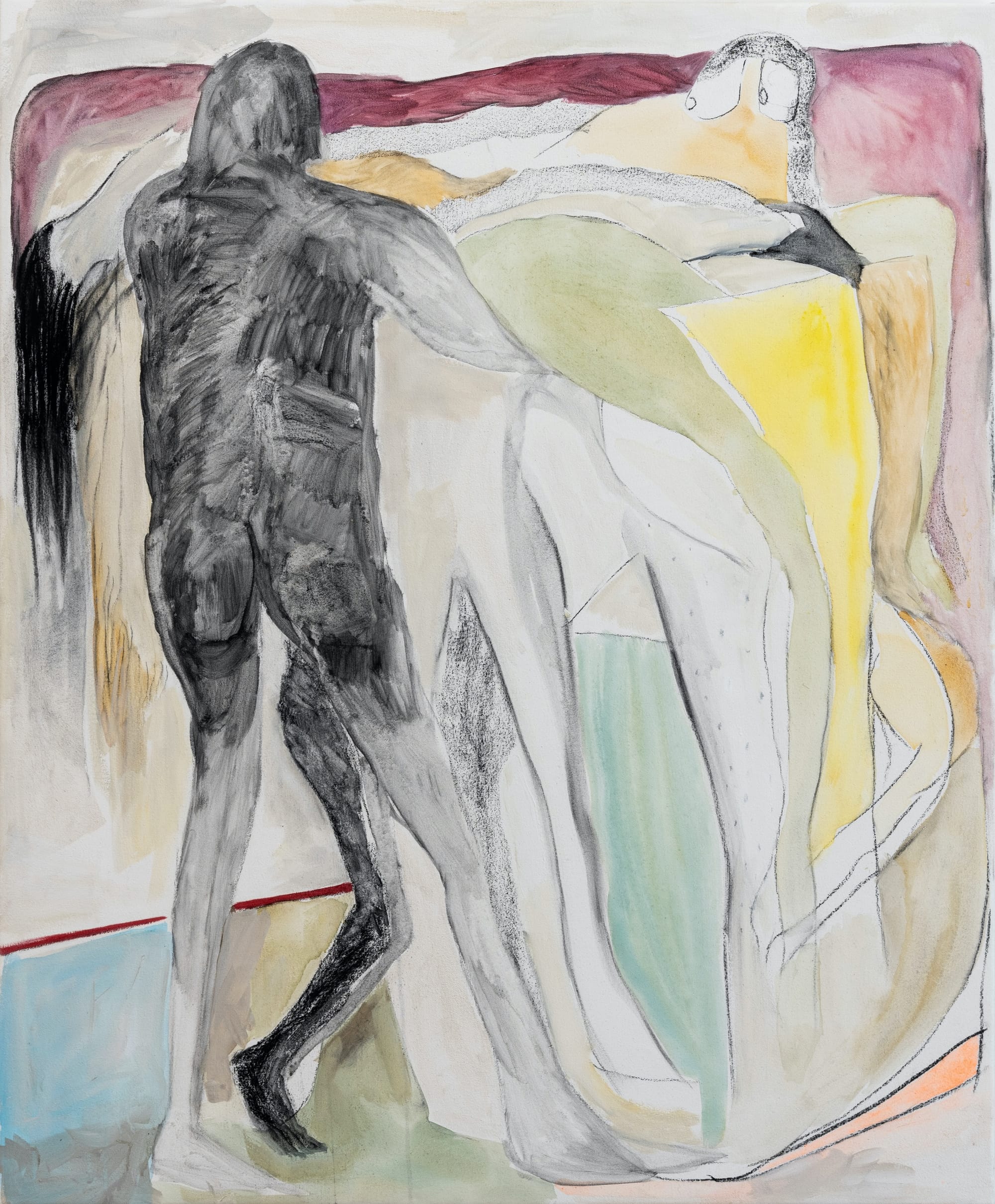 The title of Mexican artist Lucía Vidales’s current exhibition, Sudor Frío (“cold sweat” in Spanish), evokes a paradoxical state: the body is inactive, maybe even immobile, yet perspiring. On view at New York's PROXYCO are 12 unusual figurations all made in the last year, a time when many of us remained largely confined to our domestic spaces. The artist's paintings, filled with sluggish, draping limbs, plumb the tension of the show’s titular phenomenon — our pandemic bodies may be moving slower, but our minds and hearts are racing.
