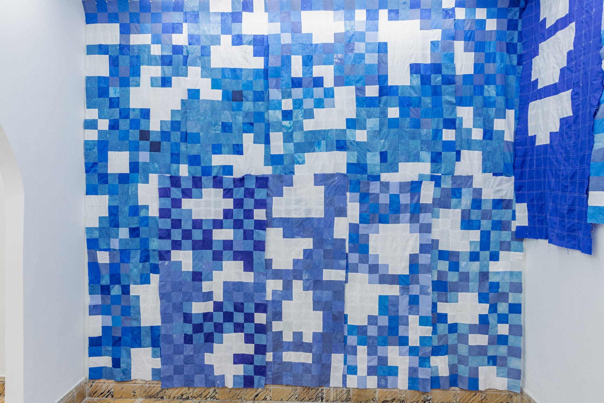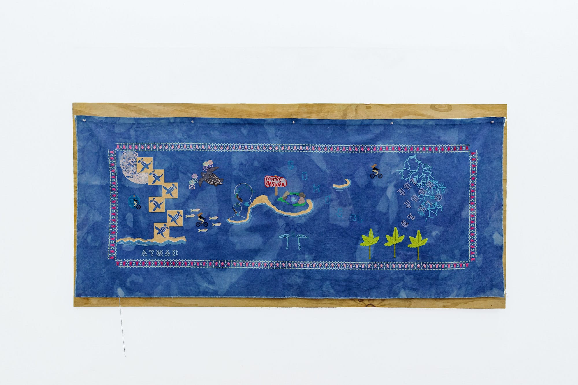 The artist’s embroidered works suggest the need for collectivity to overcome common struggles such as environmental destruction.