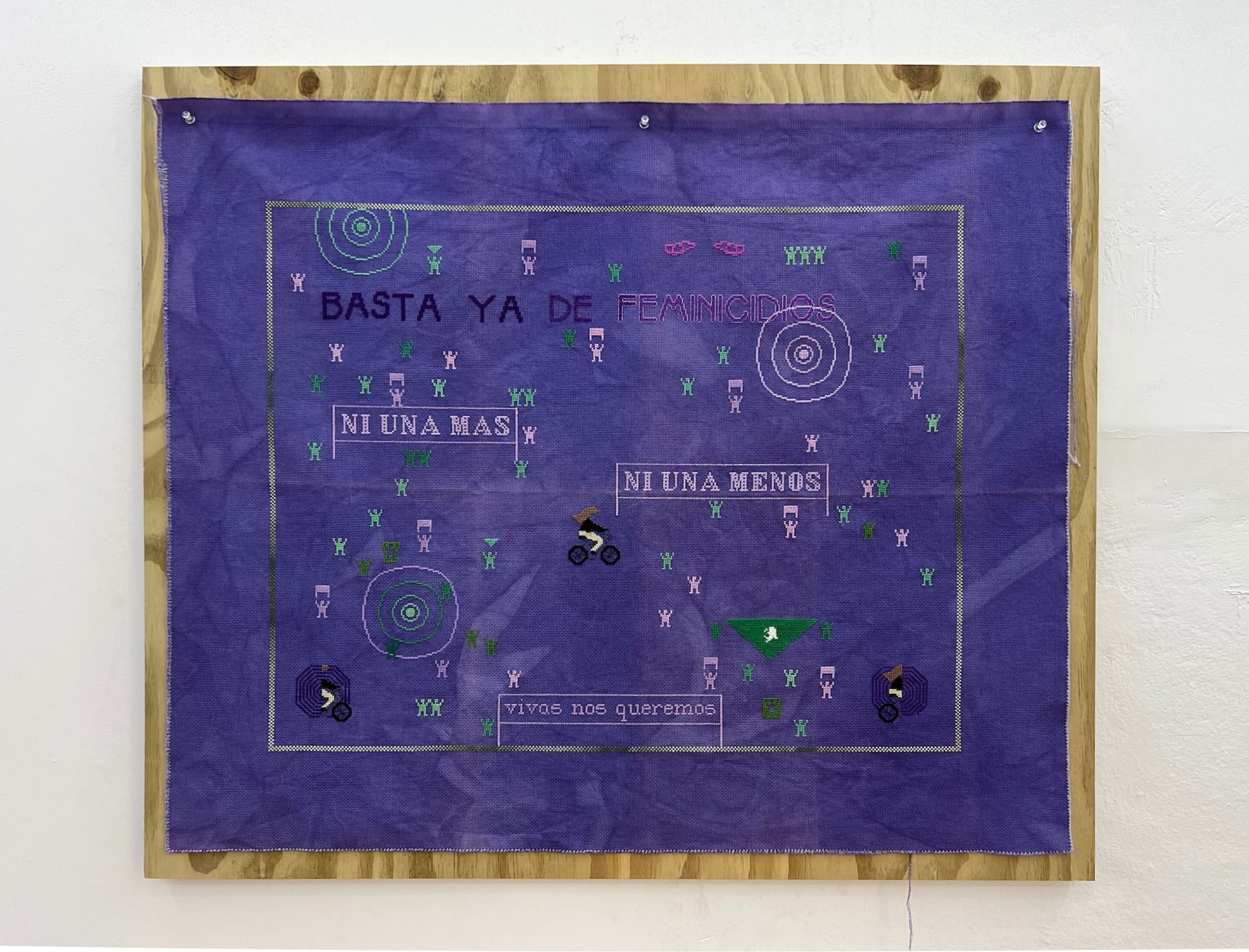SAN JUAN, Puerto Rico — Justo ahora (right now), María “Lulú” Varona’s second solo show at Embajada gallery, presents cross-stitched and embroidered works that meditate on local concerns such as femicide and environmental destruction, affirming the political potential of solidarity.