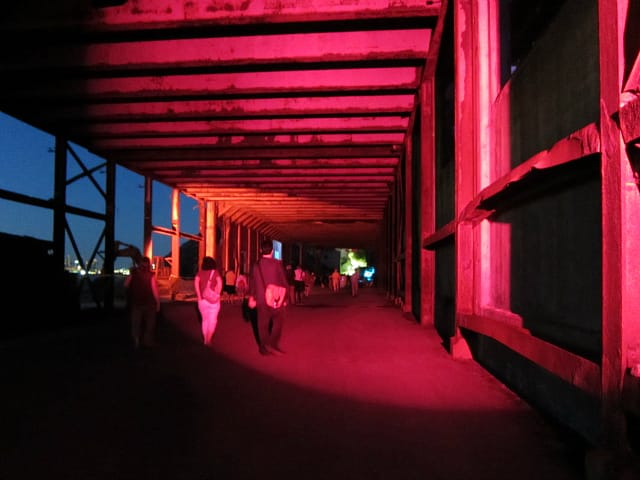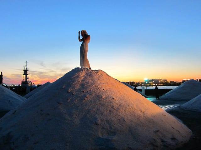 There were a few missteps, like the placement of sponsorship ads right in the middle of some video art over the main entrance tunnel and the performance artist who screamed “I’m fine!” over and over again in front of the portable toilets. However, it was mostly a cohesive experience that felt different from any art festival I’ve experienced in New York. The mounds of salt made for a striking backdrop, especially when surrounded by a quiet industrial waterfront where some of the derelict buildings date back to the 1800s.