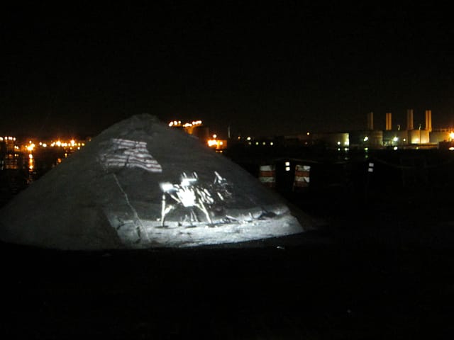 Right next to the poor, weeping bird was Marco Brambilla’s “Sea of Tranquility,” which projected a scene of the decay of a lunar module left behind on the moon, not unlike the ruins of the factory left behind by past industry on the waterfront.