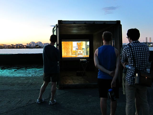 Unused shipping containers also housed a diversity of video installations, from Rolando Vargas’s “Eight-Times-Twenty-Five (Diptych),” suspended between transparent screens, to Steven Lapcevic’s viseral animation “STATION.”